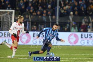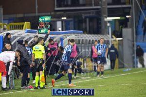 Succede davvero poco nei primi venti minuti, fino all’ingresso di Di Stefano per Lepore: subito sgasata, Vicari lo abbate e prende un giallo sacrosanto.