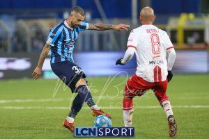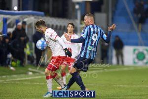 Buona opportunità al 32′ con il lancio lungo su Buso che prova a saltare Benali per poter calciare, ma si infrange sull’avversario. Subito dopo sinistro dalla lunga distanza di Acampora, alle stelle. Novakovich lavora un buon pallone sulla trequarti al 38′, prova a calciare e trova una serie di deviazioni; facile la presa di Brenno. Qualche istante più tardi Novakovich va via da solo, ma la difesa barese si piazza e l’attaccante bluceleste non trova spazi.