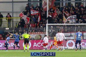 Il Lecco la sblocca al 69′: punizione di Crociata, servizio largo per Novakovich che fa sponda aerea, Brenno smanaccia ma Buso è lesto a scaraventarla di prima intenzione dal limite dell’aera facendola passare in una selva di gambe. Meritato 1-0.