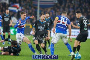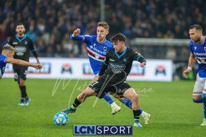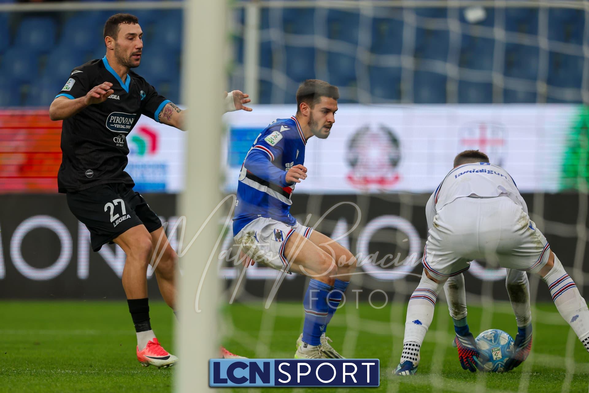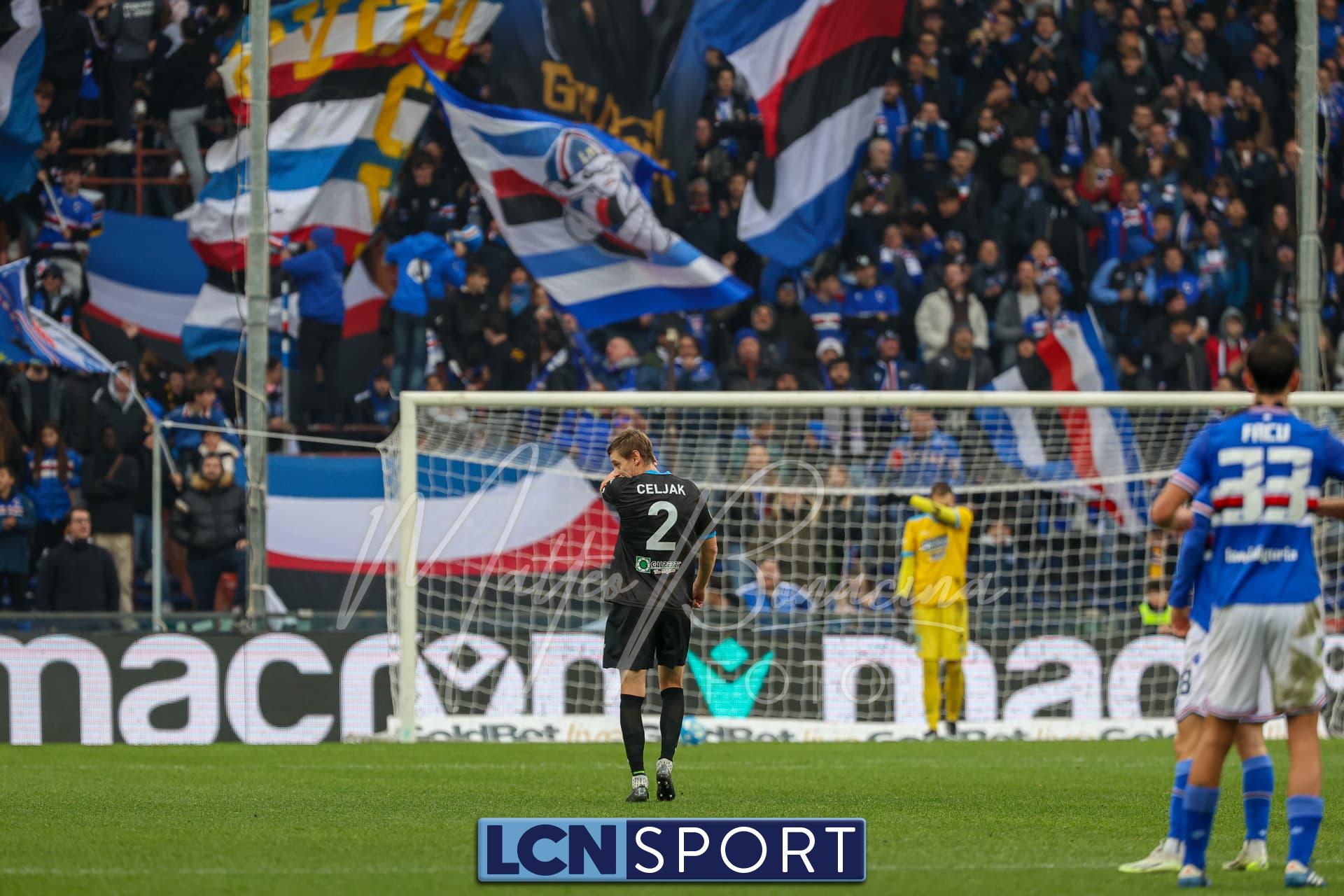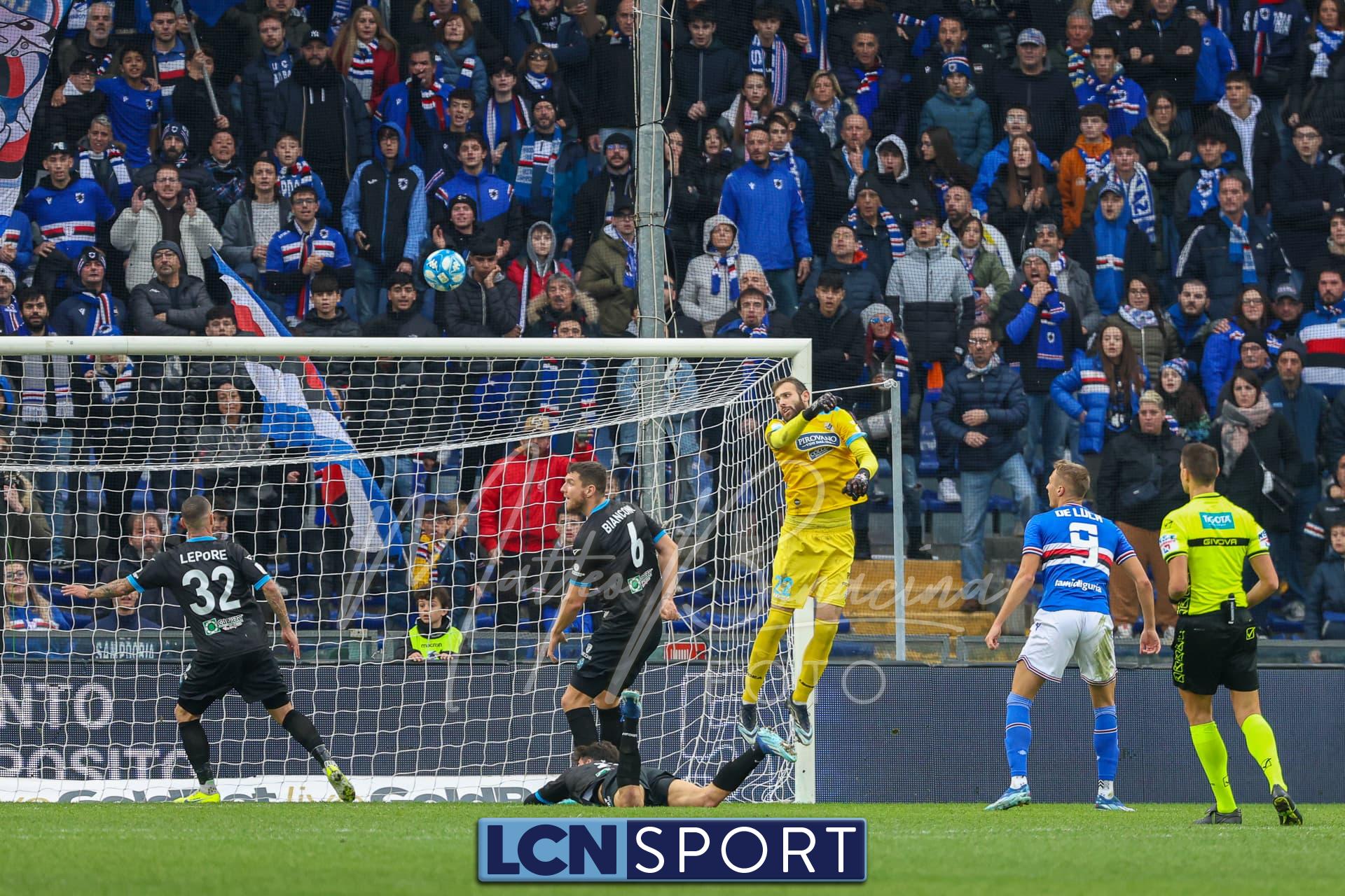 La partita si conclude con il grande intervento di Lemmens che si lancia in scivolata e tira letteralmente fuori dalla porta il pallonetto di De Luca su Saracco. Finisce 2-0 per la Samp, con pieno merito. Per i blucelesti ora subito testa allo scontro diretto con la Ternana.