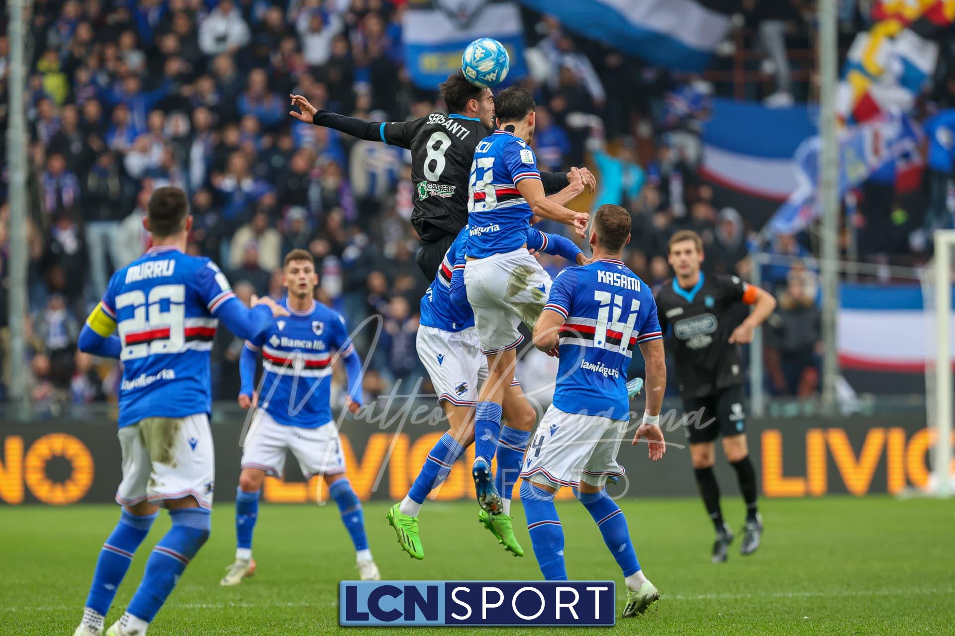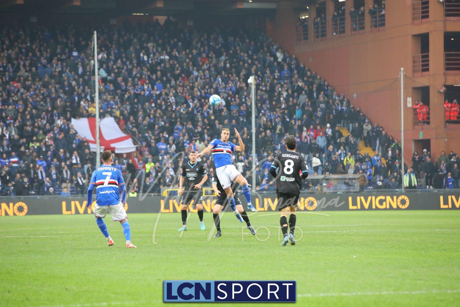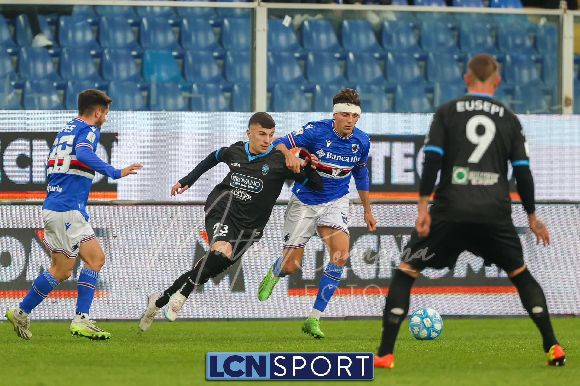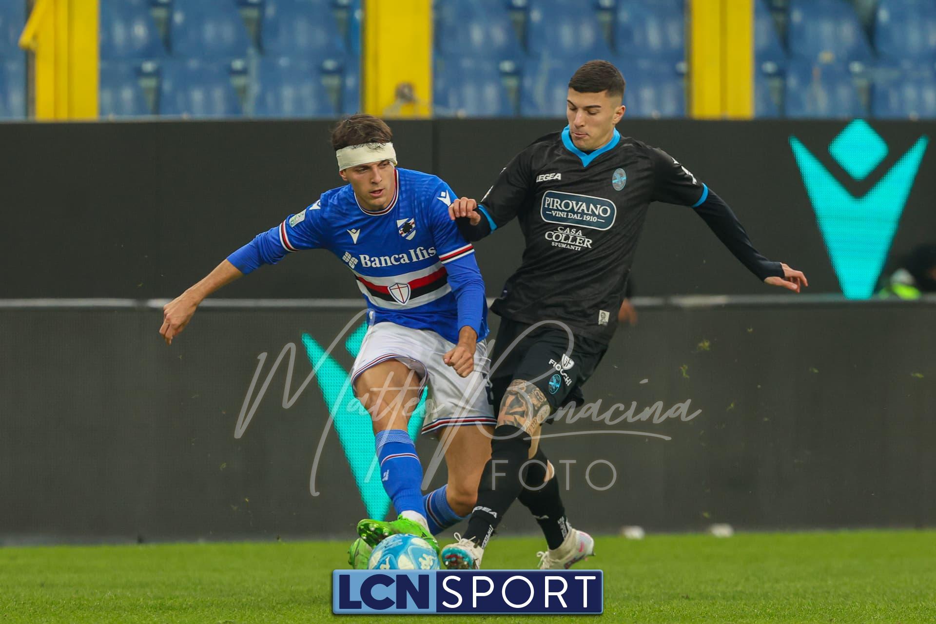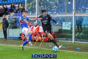 La Samp parte forte: punizione di Verre col destro, Saracco devia in rimessa laterale. Clamorosa occasione ancora per Esposito al 49′: col primo controllo mette a sedere Bianconi, ma invece di insaccare anche di punta prova un esterno destro assolutamente velleitario, non centrando la porta.