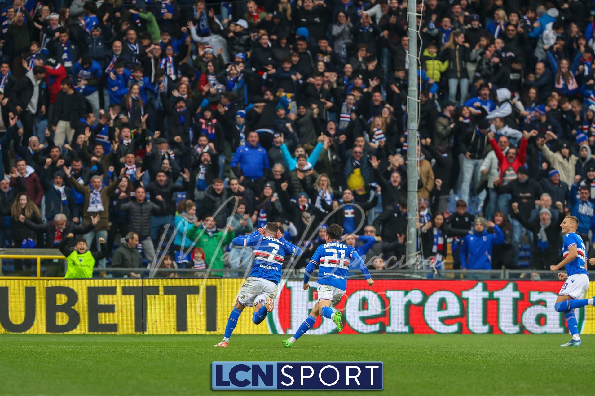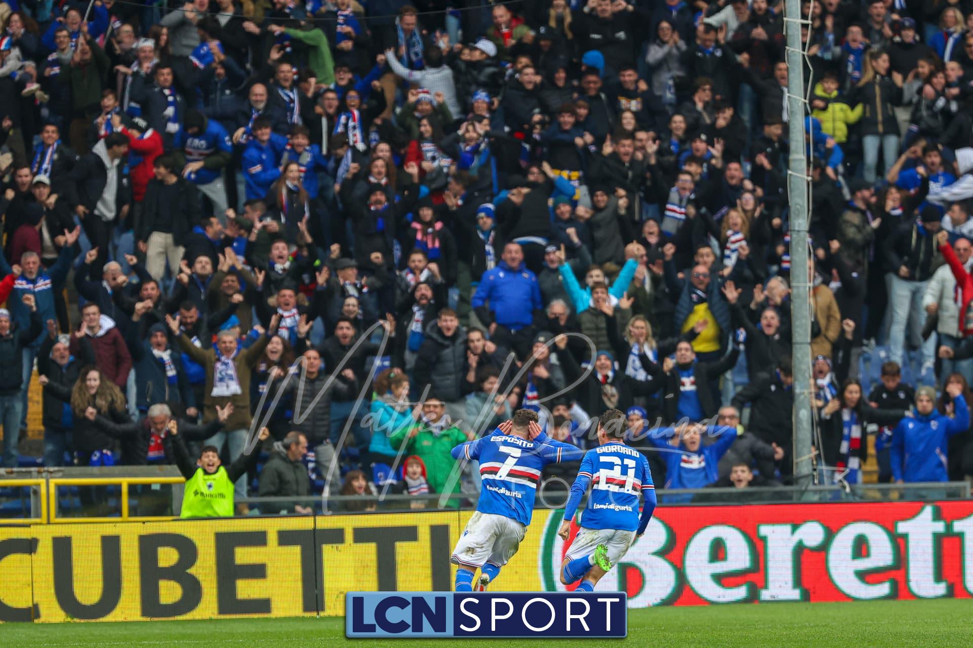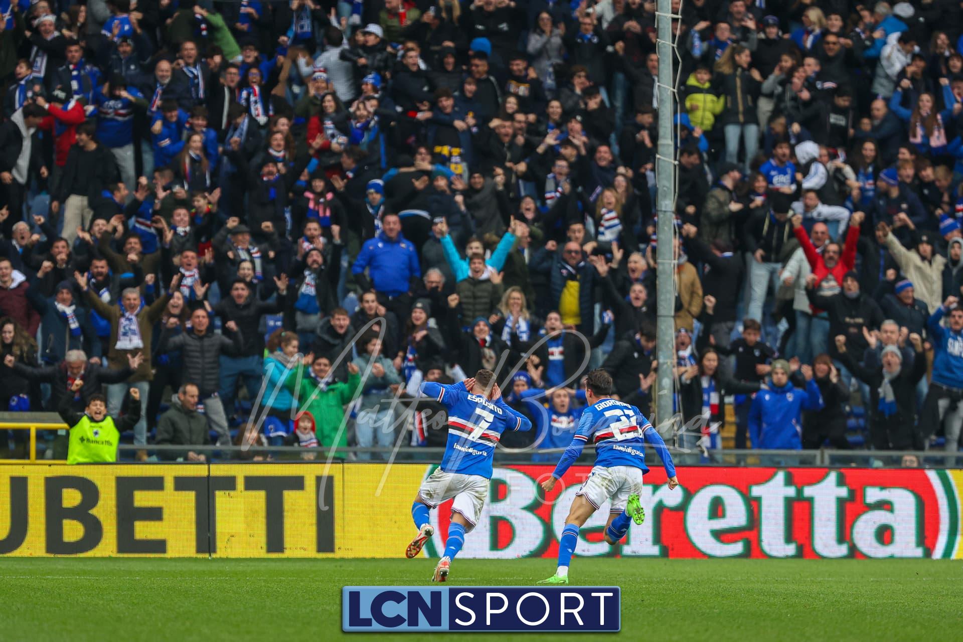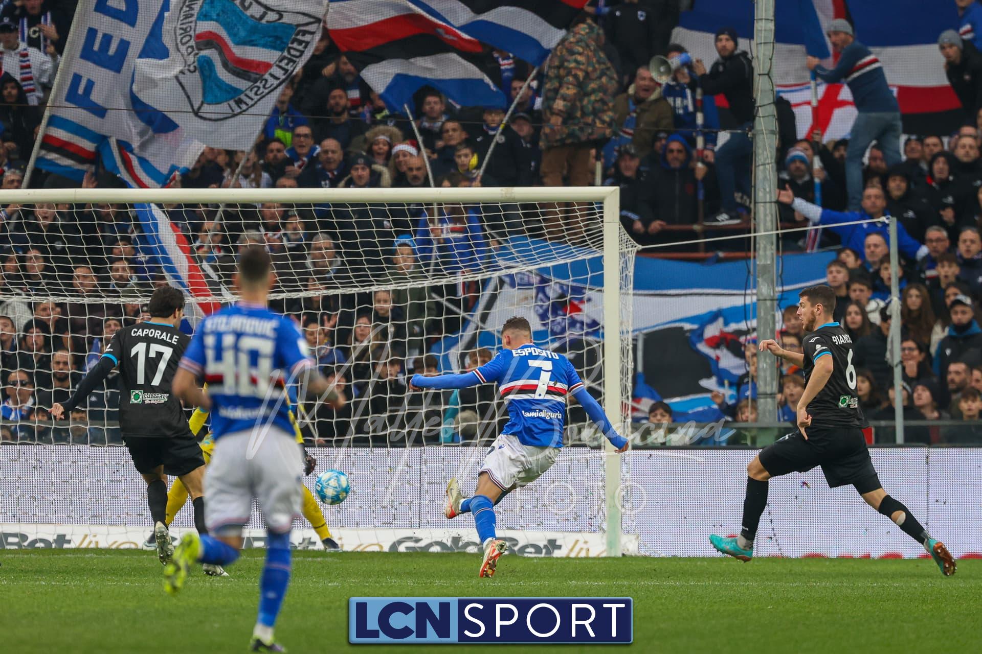 Il raddoppio Samp al 70′: Esposito riceve sulla destra, punta e salta con una finta Bianconi e poi scarica un sinistro imparabile sotto l’incrocio. L’azione nasce da un possibile fallo su Di Stefano non fischiato né rivisto.