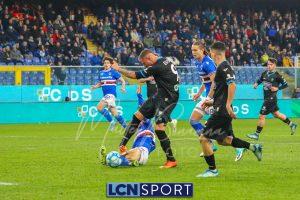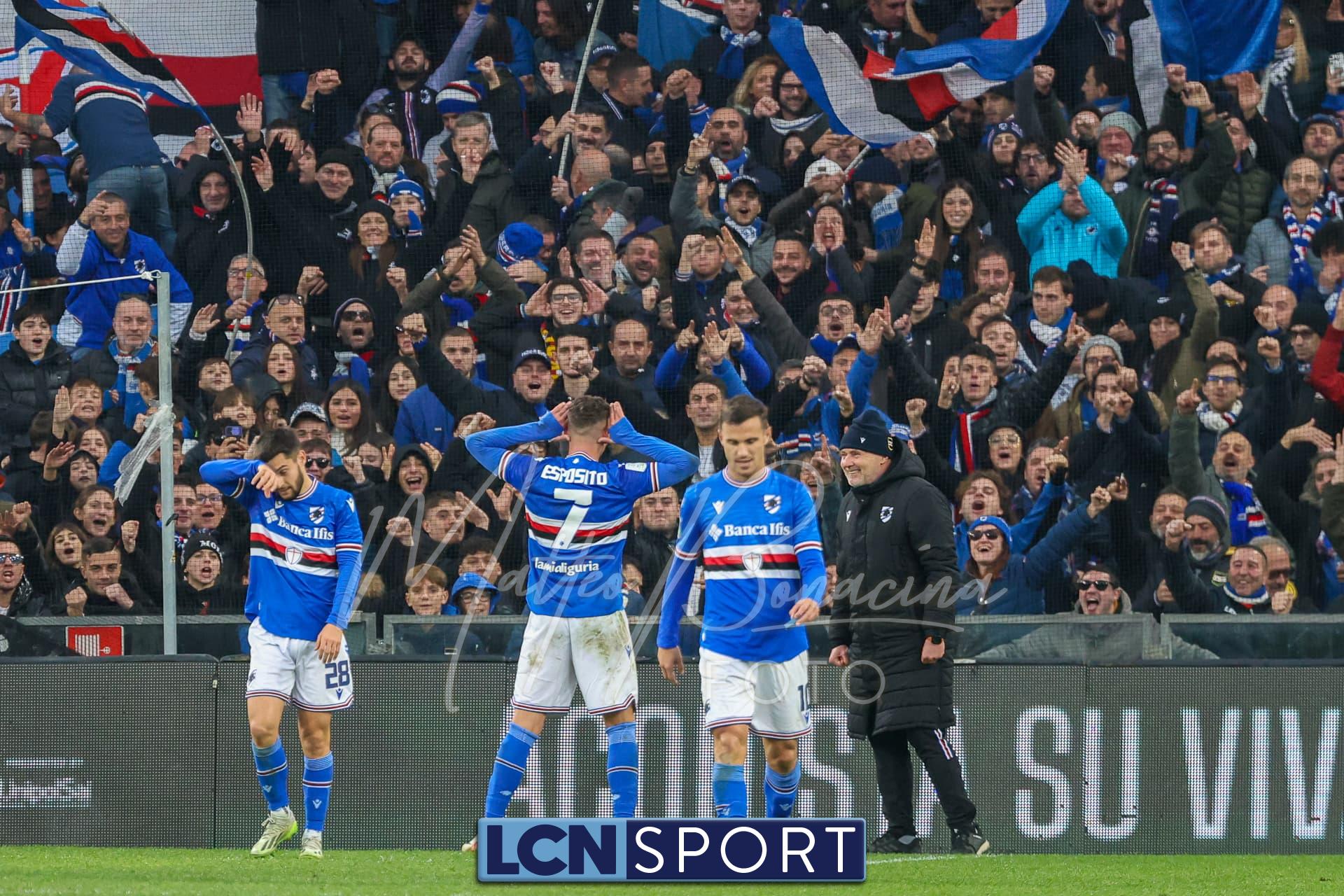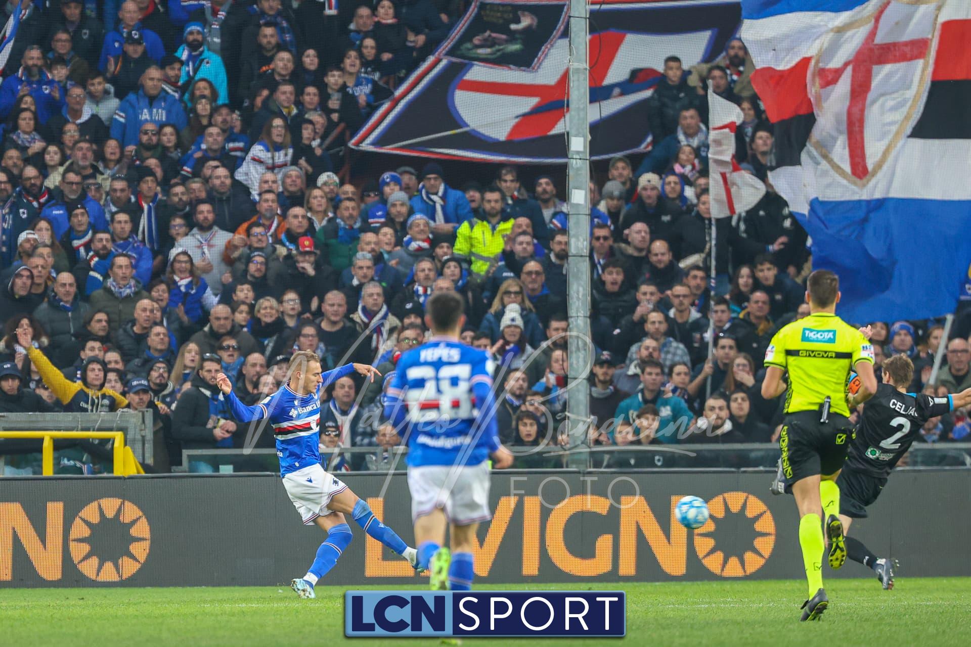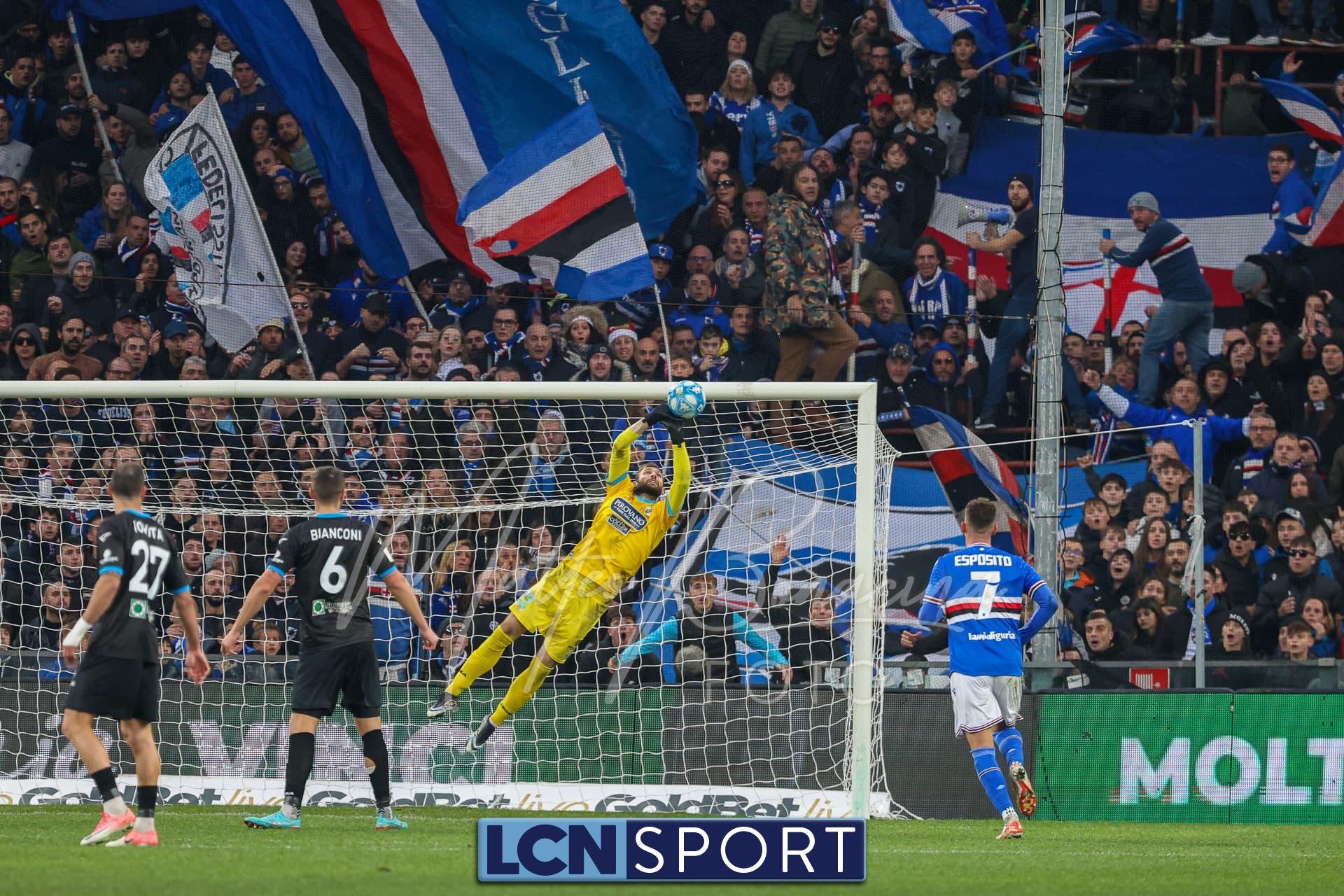Il raddoppio Samp al 70′: Esposito riceve sulla destra, punta e salta con una finta Bianconi e poi scarica un sinistro imparabile sotto l’incrocio. L’azione nasce da un possibile fallo su Di Stefano non fischiato né rivisto.