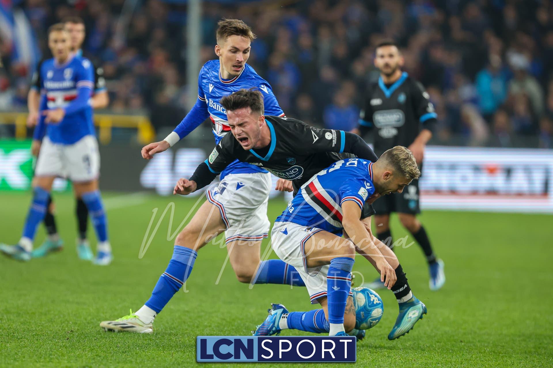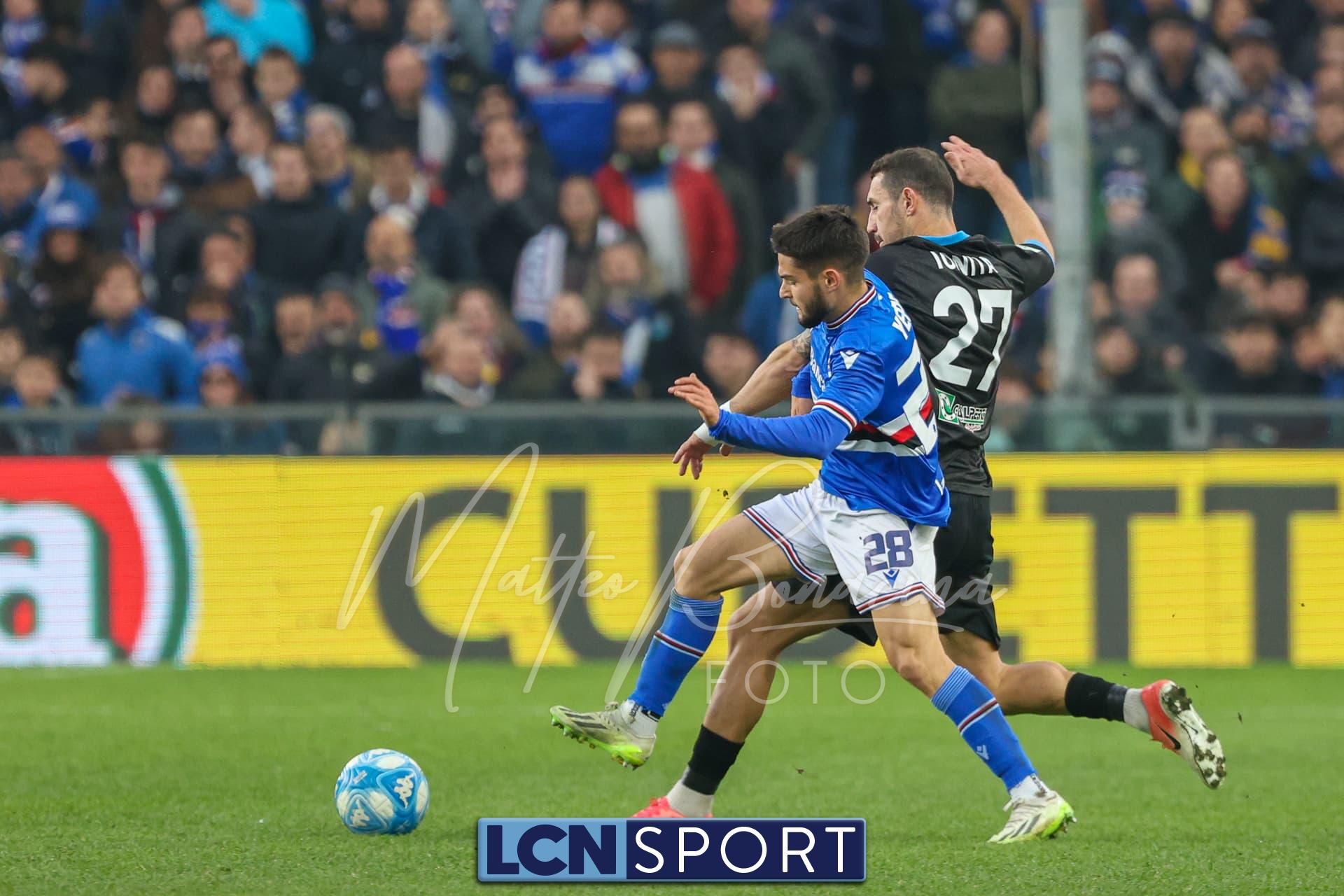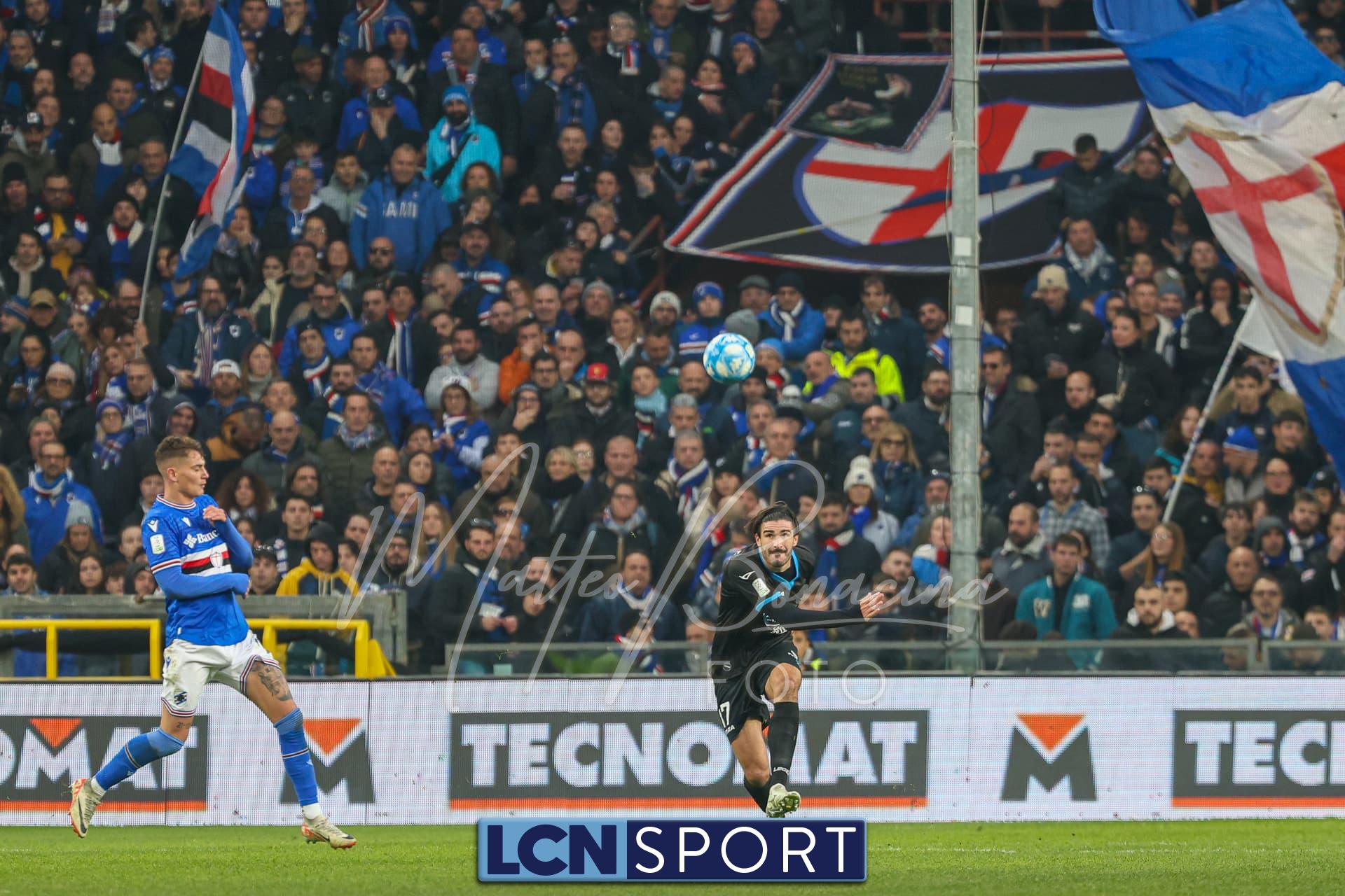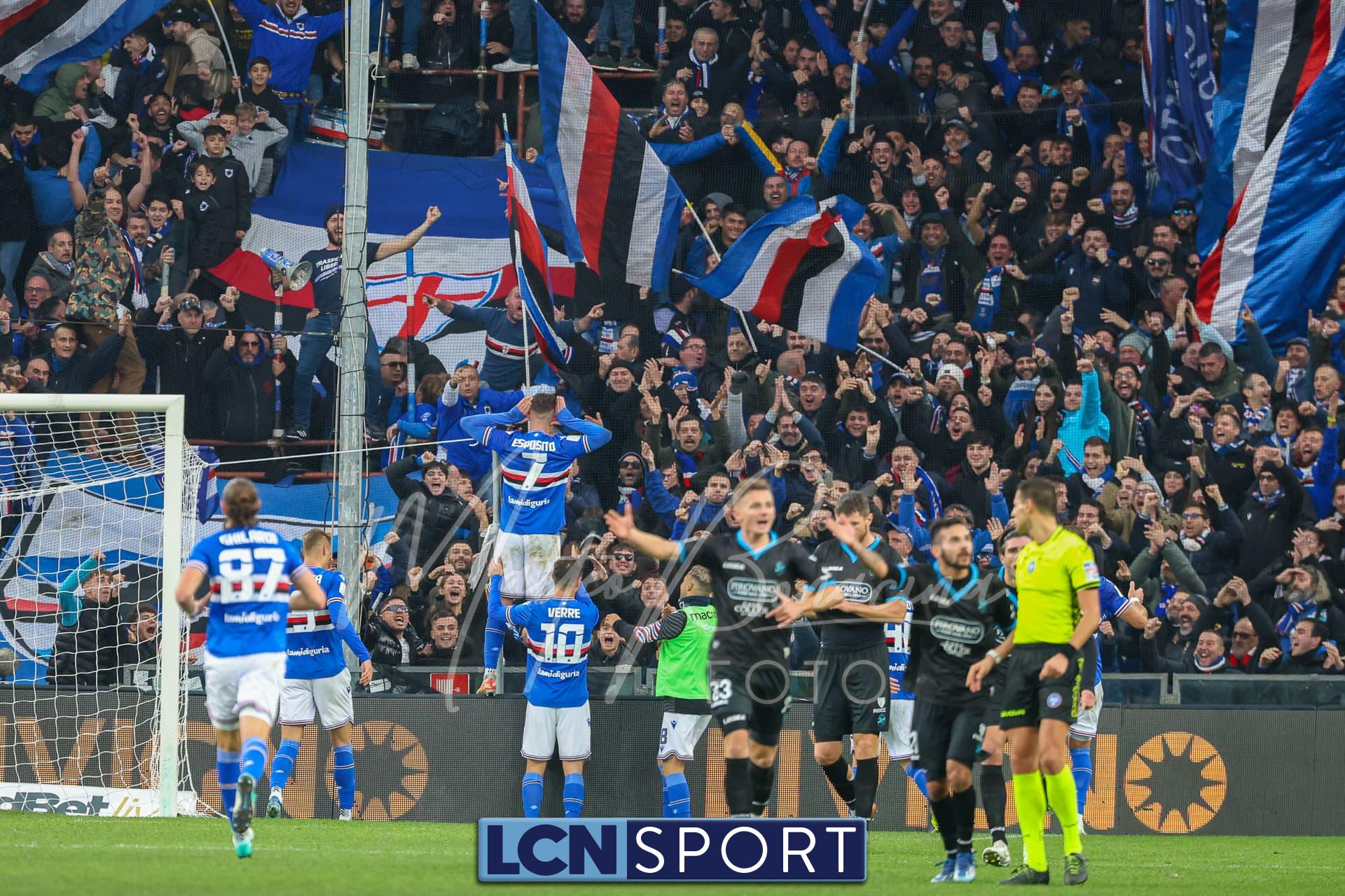 Il raddoppio Samp al 70′: Esposito riceve sulla destra, punta e salta con una finta Bianconi e poi scarica un sinistro imparabile sotto l’incrocio. L’azione nasce da un possibile fallo su Di Stefano non fischiato né rivisto.