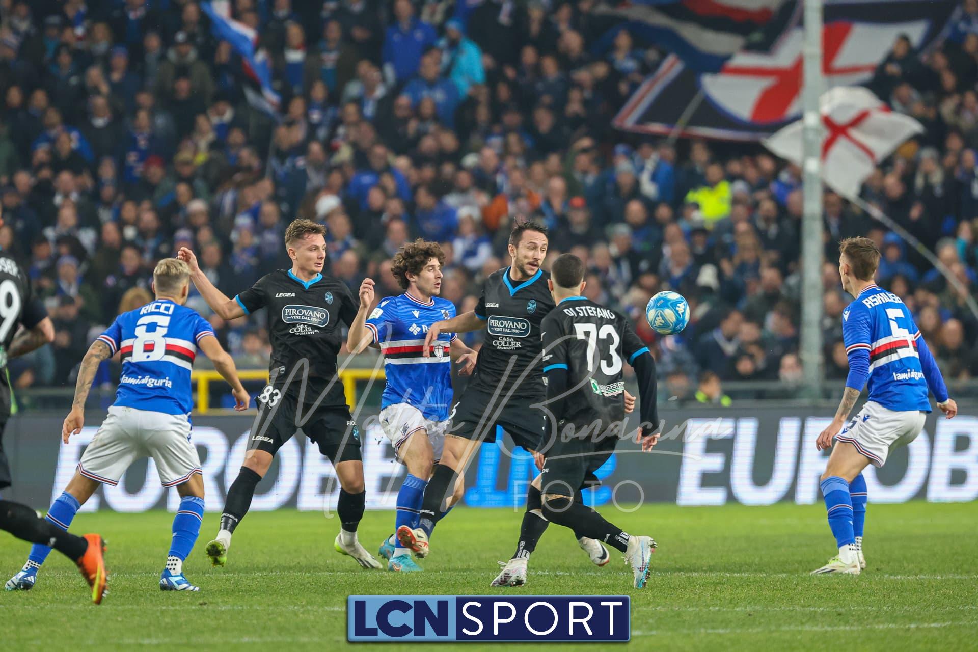 La Samp ha una grande chance al 20′, del tutto casuale: da un mancato intervento sulla trequarti palla a Verre che calcia in diagonale, la palla fa la barba al palo. Ci prova De Luca al 24′, il pallone “masticato” di destro rimbalza più volte e finisce largo in diagonale. Buon momento dei doriani, che al 26′ stazionano in area del Lecco senza riuscire però a calciare in porta. Sersanti decisivo a leggere bene il cross e anticipare Esposito prima che possa staccare di testa davanti a Saracco.