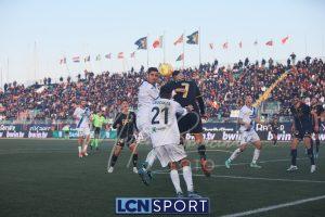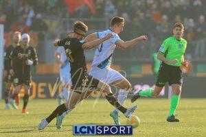 Malgrati sceglie il solito 4-3-3 con Lemmens basso e Lepore alto a destra. Primo tentativo di Sersanti dal limite dell’area, murato dalla difesa. All’8′ prova da lontano Tessmann, rasoterra respinto dalla linea difensiva bluceleste.