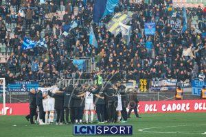Lecco (4-3-3): Melgrati; Lemmens, Celjak, Bianconi, Caporale; Ionita (dal 28′ s.t. Galli), Sersanti, Crociata (dal 37′ s.t. Degli Innocenti); Lepore (dal 13′ s.t. Giudici), Novakovich (dal 37′ s.t. Eusepi), Buso (dal 37′ s.t. Battistini) (Saracco, Tordini, Pinzauti, Marrone, Boci, Di Stefano, Agostinelli). All. Bonazzoli-Malgrati.