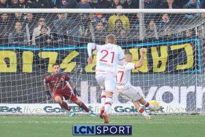 Al 27′ erroraccio di Celjak nel controllo in uscita, Rauti si invola a sinistra ma non calcia, la difesa si piazza e si salva murando prima con Bianconi e poi con Celjak le conclusioni di Casiraghi e Pecorino. Poco dopo Buso prova una rovesciata incredibile, senza trovare benissimo la palla.