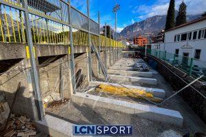 Lavori in corso al “Rigamonti-Ceppi”. Chiuso il girone d’andata, all’interno del tempio del calcio lecchese è tempo di pensare all’ampliamento della Curva Sud. Nei mesi scorsi sono state effettuate le colate di cemento nella parte posteriore del settore ospiti, che faranno da base per la costruzione in metallo che porterà la capienza sopra le 1.000 persone: si tratta di un passaggio vitale, dato che durante la scorsa estate la Commissione Impianti Sportivi della FIGC capeggiata dall’ingegner Carlo Longhi – presente allo stadio per Lecco-Sudtirol – ha concesso la necessaria deroga nonostante la capienza inferiore ai 5.500 posti richiesti. Lo scorso 20 dicembre si è riunita la precommissione provinciale per fare il punto sulle certificazioni richieste, mentre nella mattinata di mercoledì 27 dicembre gli addetti dell’impresa lecchese Valassi FeF hanno rimosso la prima parte dei parapetti posizionati nella parte superiore della gradinata.