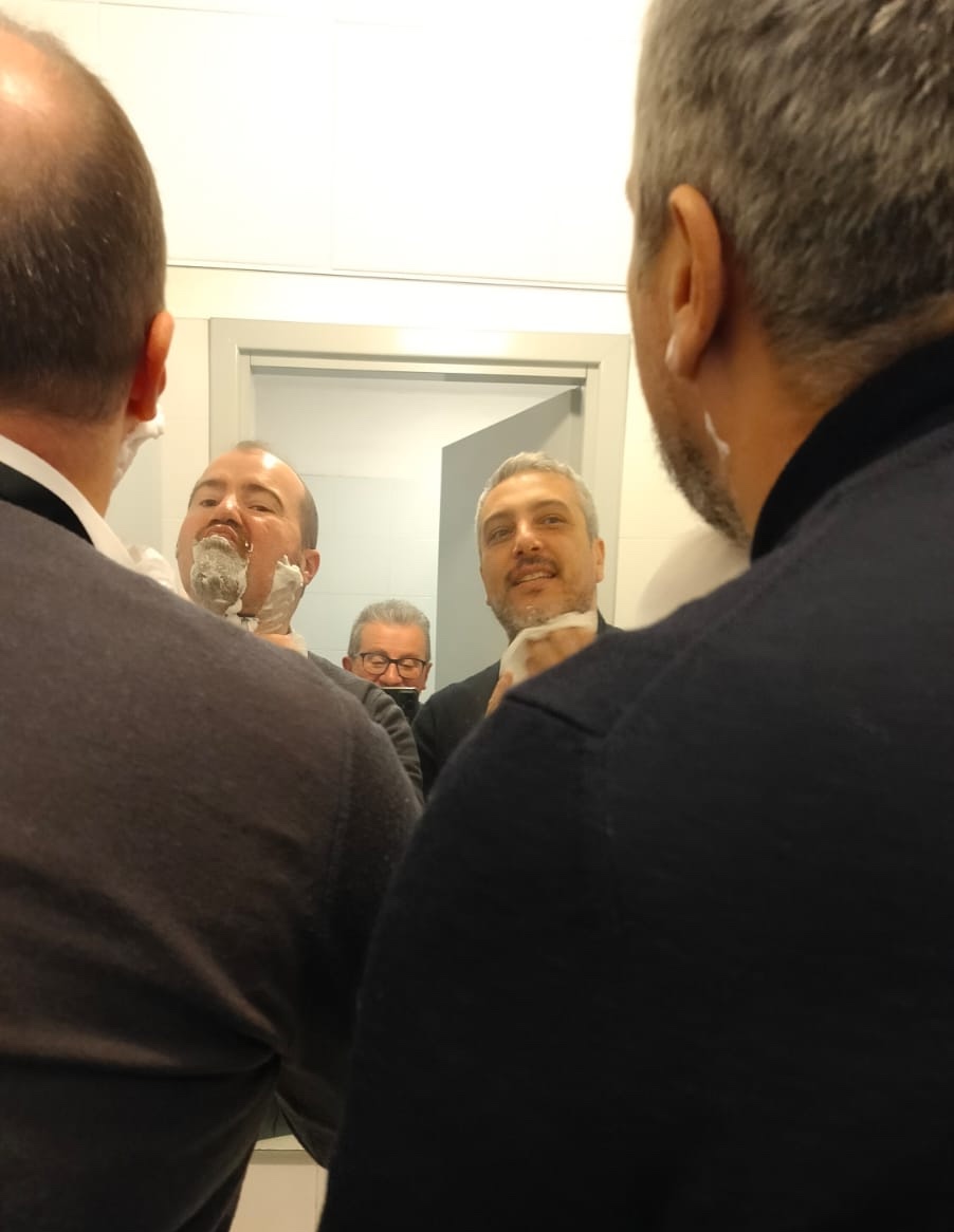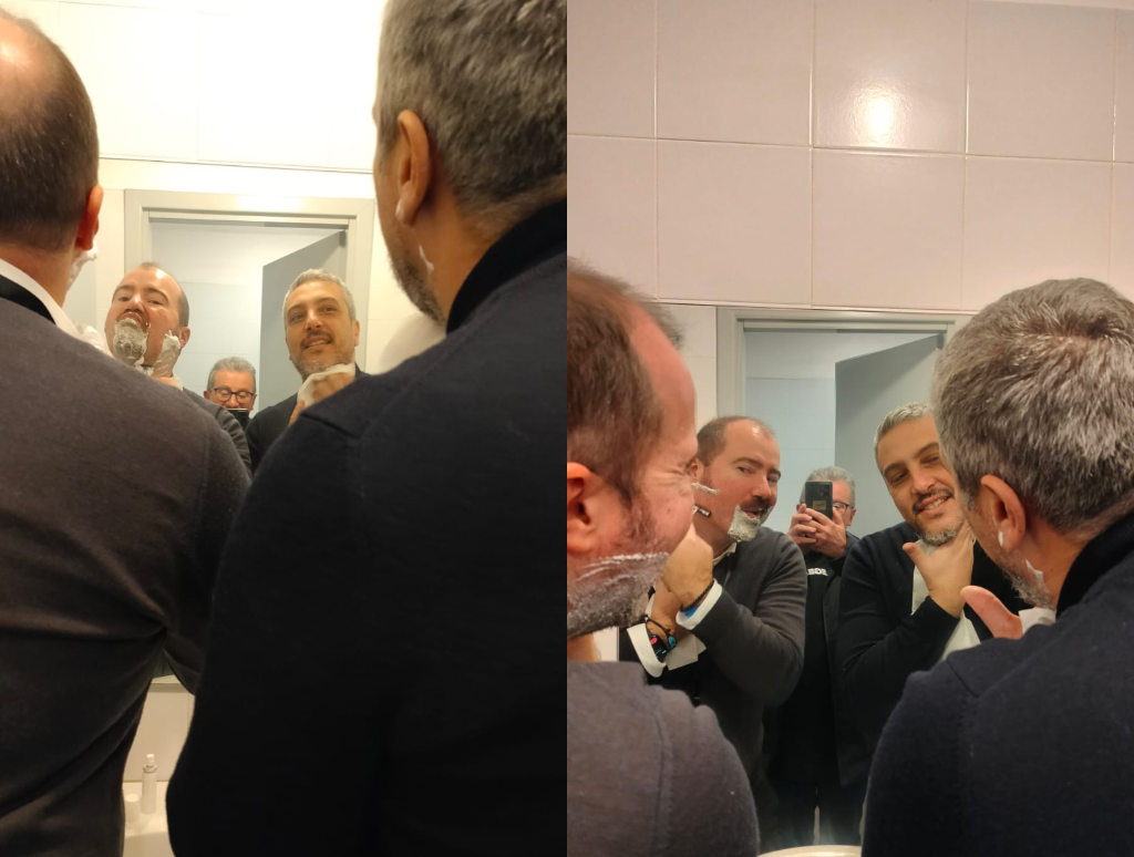 C’era un fioretto legato a Lecco-Sudtirol. Si è scoperto dopo il match, nella pancia del “Rigamonti-Ceppi”: il diesse Domenico Fracchiolla e il commercialista Francesco Micheli, grandi amici dalla prima esperienza bluceleste del dirigente, sono scomparsi nel bagno di servizio presente nell’anti sala stampa per onorare la promessa fatta alla vigilia. I due si sono sottoposti a una rasatura “congiunta” della barba, dopodiché hanno mostrato il residuo baffo: una punta di colore per una partita che ne aveva già regalato parecchio sul campo da gioco. Il momento, mostrato in anteprima durante la puntata de “Il Blu e il Celeste” di mercoledì 27 dicembre, è stato immortalato da Lanfredo Birelli. Chissà in caso di salvezza…