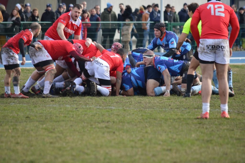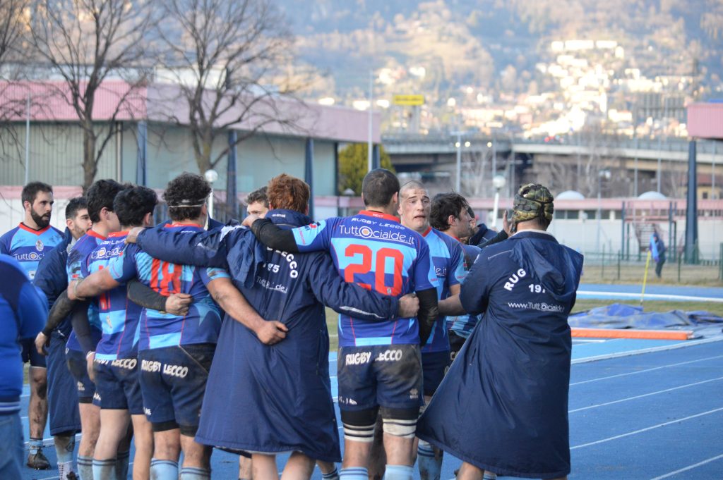 I blucelesti, che possono recriminare per una punizione sfortunata di Pellegrino, scivolato al momento del calcio, hanno espresso un rugby migliore palla in mano, ma nello sport, si sa, chi vince ha sempre ragione. Il Lecco è andato a segno con tre punizioni di Pellegrino e una meta di Riva e ha toccato il massimo vantaggio sul 9-5, prima di vedersi rimontare dagli emiliani e superare dal 14-12 con un calcio piazzato.
