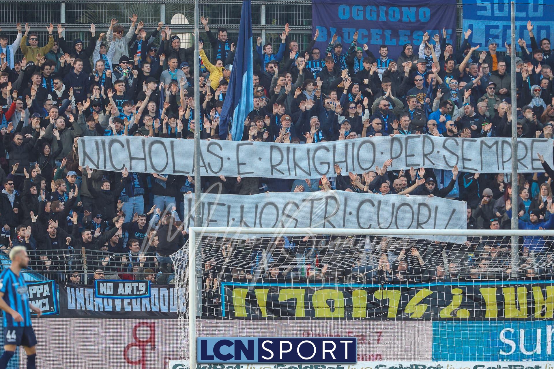 Da sottolineare l’omaggio della Curva Nord a Nicholas e Simone Combi, scomparsi in un incidente stradale avvenuto nella notte fra sabato e domenica. Uno striscione li ha ricordati, mentre prima della partita è stato deposto un mazzo di fiori in tribuna dal dg Angelo Maiolo.