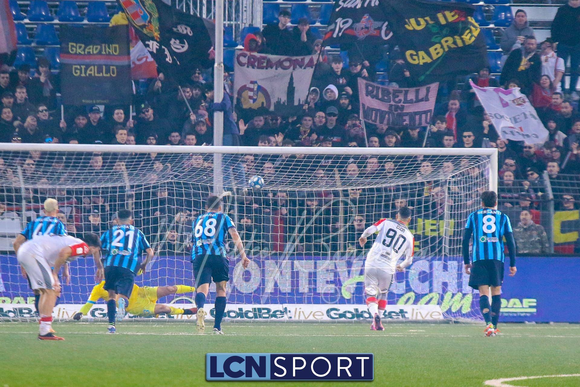 Succede poco fino al 52′: tentativo di cross di Zanimacchia e fallo di mano piuttosto netto di Frigerio (buona la sua partita fino a quel momento): rigore per la Cremonese. Dal dischetto Coda è implacabile e la infila sotto la traversa.