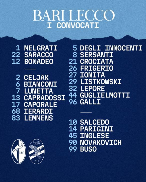 Verso Bari-Lecco, i convocati di mister Emiliano Bonazzoli