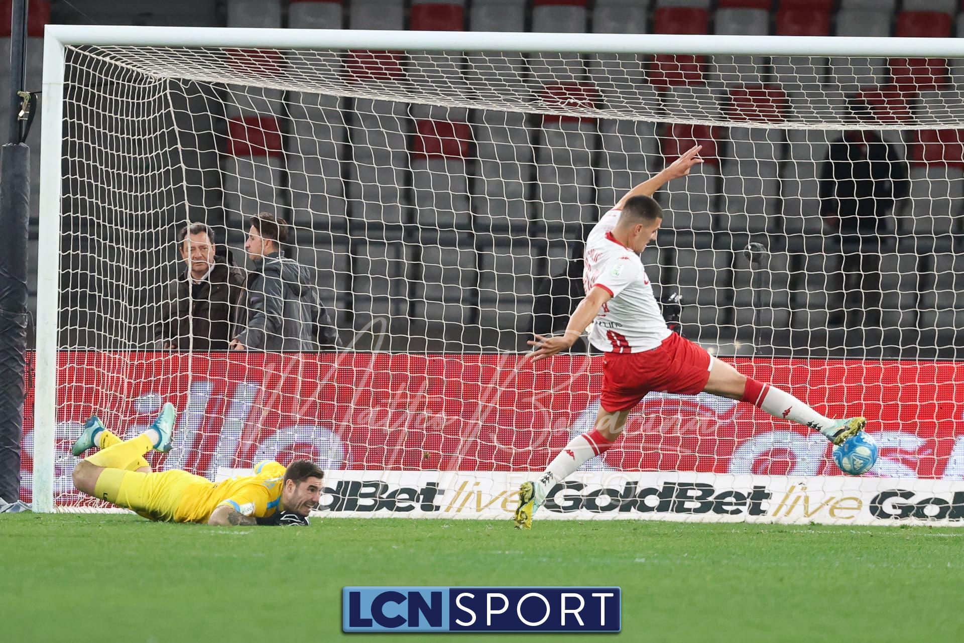 Brivido nell’area lecchese al 24′ con un filtrante da sinistra, Celjak non si fida e anticipa Melgrati in angolo. Dal corner arriva il vantaggio barese: palla ributtata fuori da Ierardi e Benali trova un gran tiro col leggero giro esterno che si insacca per l’1-0.