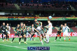 Al 21′ bella palla di Caporale da sinistra su sviluppi di corner, Guglielmotti stacca altissimo ma la alza sopra la traversa. Si fa vedere la Ternana al 25′ con l’azione sulla destra di Sgarbi, che prova a calciare forte in mezzo e trova l’opposizione della difesa bluceleste.