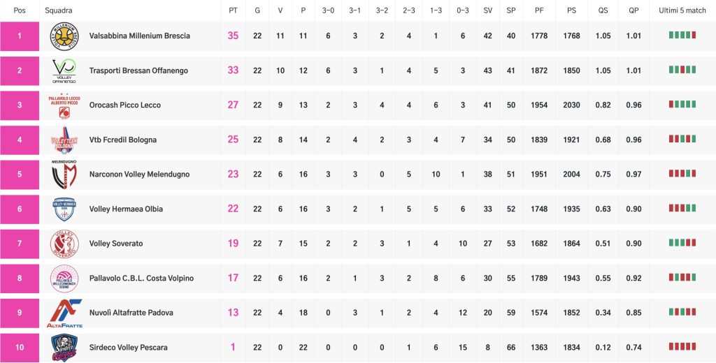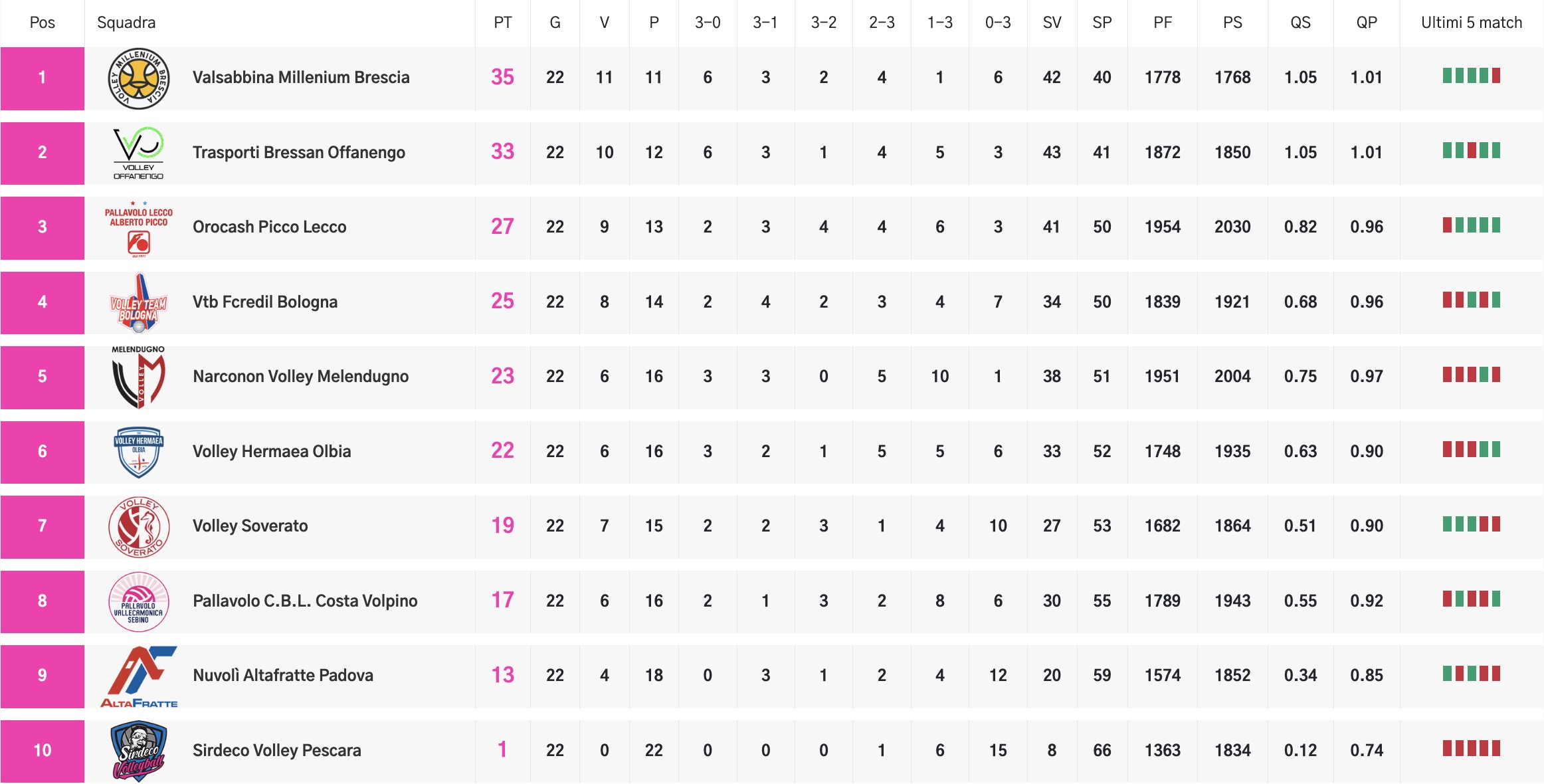 Orocash Picco Lecco 3-1 Valsabbina Millenium Brescia
