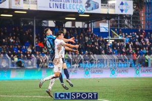 Il Lecco reagisce al 44′ sulla punizione di Parigini che scodella per Inglese, il quale stacca benissimo e con grande forza: sulla splendida inzuccata Pigliacelli compie un autentico miracolo con un guizzo felino e respinge sulla linea.