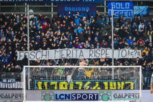 Al Rigamonti Ceppi vigilia della partita scossa dalle parole pesantissime di Paolo Di Nunno che dal terrazzino, col microfono, se la prende con i propri tifosi in diretta nazionale su Sky. «Avete la Serie B, meritate la Terza categoria». Dopo quanto accaduto settimana scorsa e l’annunciato sciopero parziale del tifo, non il migliore viatico per un match a dir poco decisivo.