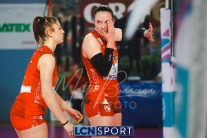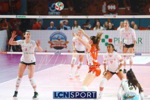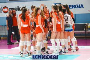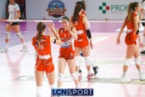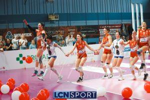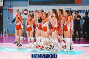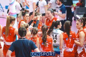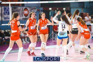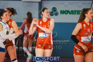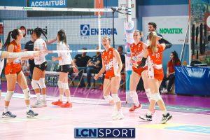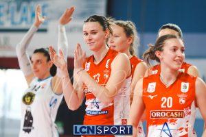 Come detto, la decima vittoria arriva alla fine di quello che è quasi un assolo: nel primo set Volley Soverato tiene botta fino al virtuale giro di boa (14-12), dopodiché le biancorosse cambiano marcia e piazzano un allungo irresistibile grazie al break firmato da Conti, Kadyrova e Piacentini (21-16); le calabresi perdono i riferimenti e sbagliano tanto, basta il solo punto della scatenata schiacciatrice russa per chiudere la questione. Il secondo set dura lo spazio di 20′ e spicci: una Sassolini totalmente a proprio agio distribuisce cioccolatini a destra e a manca, il 10-5 che matura in fretta è eloquente, si corre rapidamente verso il 19-8 che diventa 25-11 in un amen, giusto il tempo di far ruotare la gran parte delle giocatrici presenti sul taraflex. Il terzo set ha un punteggio finale diverso (25-16), ma una trama molto simile a quello precedente: Piacentini è devastante in battuta e il suo break scava solco, sul 13-5 coach Gianfranco Milano cambia vari elementi, mentre sul 21-9 manda in campo per il debutto la giovane palleggiatrice Sofia Ricci oltre alla banda Cantaluppi; il primo match point viene annullato dall’attacco di Coccoli, ma Buffo manda in rete la successiva battuta: la stagione è finita, la festa inizia lì.