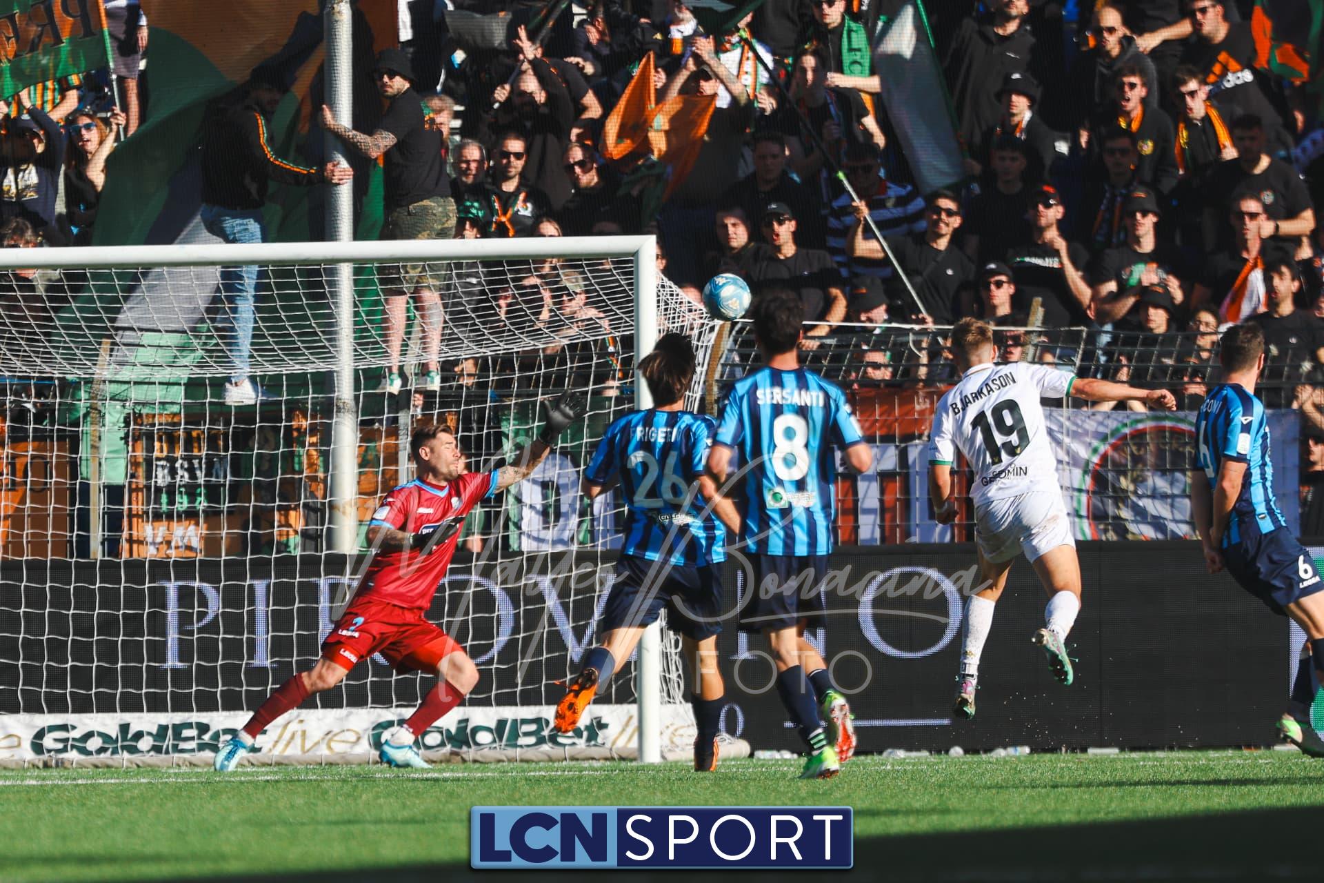 I lagunari reagiscono e prendono campo, concedendo però spazio per possibili ripartenze. Al 37′ palla toccata in area da Pohjanpalo su cui Tessmann va a calciare, Melgrati nel mucchio si distende e respinge.