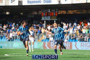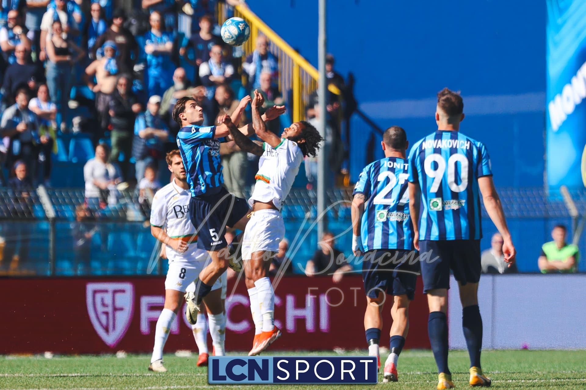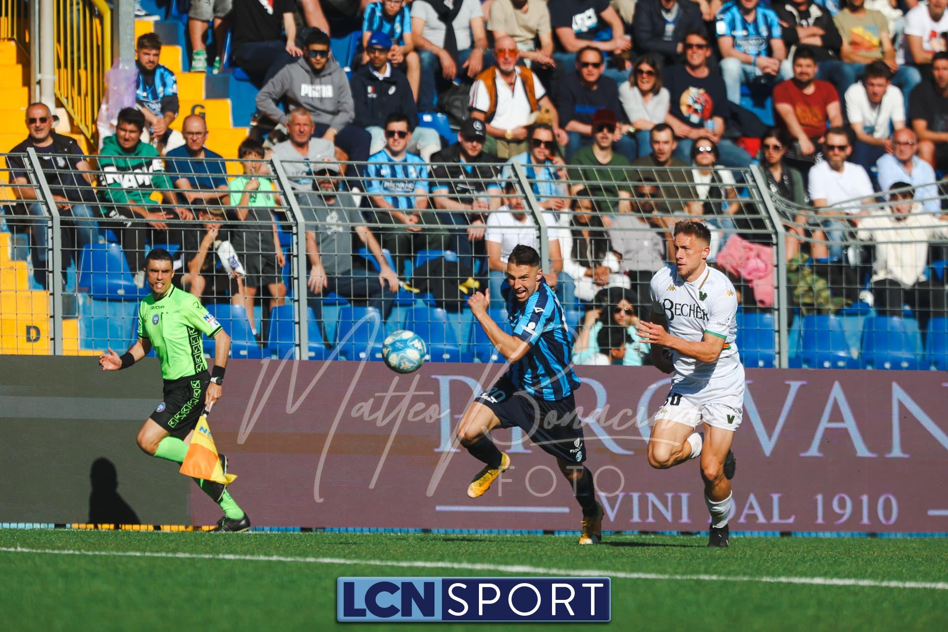 Dall’altra parte Sersanti va via a un avversario e con una sbracciata evidente lo stende all’ingresso in area: palla invitante per Novakovich, ma gioco fermato dal guardalinee. Nel finale di tempo Pierini prova a calciare al volo di destro disturbato da Celjak: altissimo. Al 44′ Novakovich si divora clamorosamente il raddoppio: sfrutta una palla persa dalla linea difensiva dei veneti, entra in area, sterza e prova un destro a giro che finisce fuori.