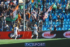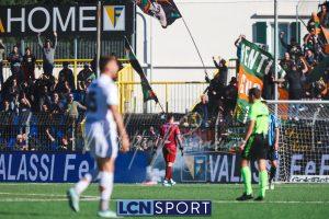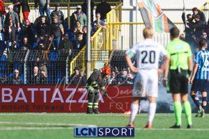In curva appeso lo striscione “Please texans save us from orecchiette”. Buon inizio del Lecco che si fa vedere subito in avanti con accelerazioni di Novakovich e Crociata. Lo stesso numero 21 al 5′ prova una conclusione da fuori al termine di una bella azione corale: altissimo in curva Sud.