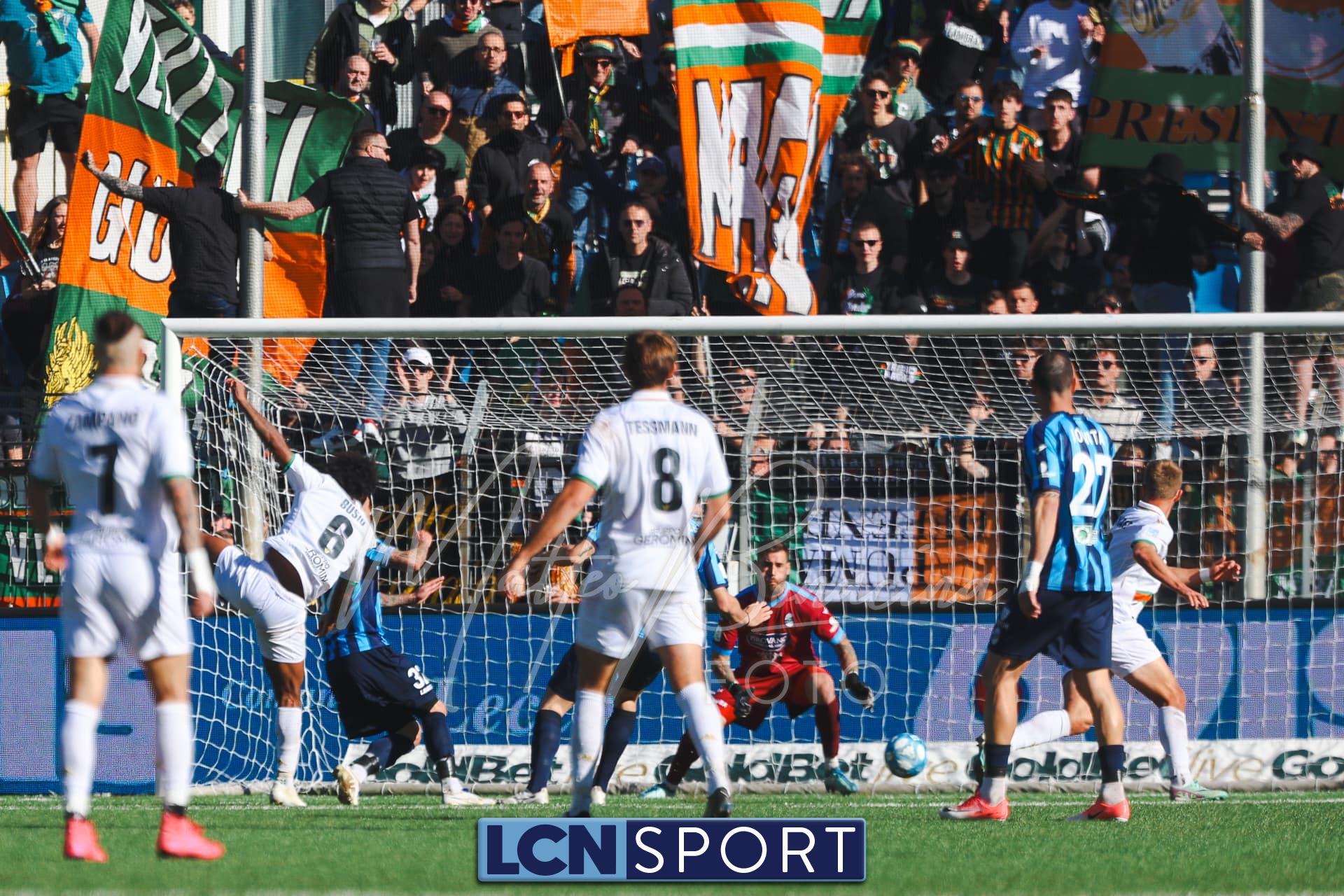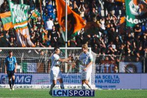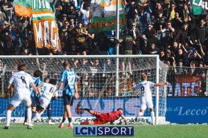Nell’altra area Buso soffia palla ad Altare e calcia addosso a Joronen da posizione favorevolissima. Dall’angolo Sersanti di testa non dà forza: il portiere la controlla. Altare prova un sinistro velleitario al 54′. I problemi, si sa, arrivano dai calci piazzati: al 57′ da angolo Celjak si scontra con Degli Innocenti e perde la marcatura di Pohjanpalo, non uno qualsiasi: gioco da ragazzi per il capocannoniere insaccare l’1-1. E la partita cambia subito: il Lecco è in bambola, Busio calcia dal limite dell’area dopo un gran controllo e al 60′ ribalta il risultato.