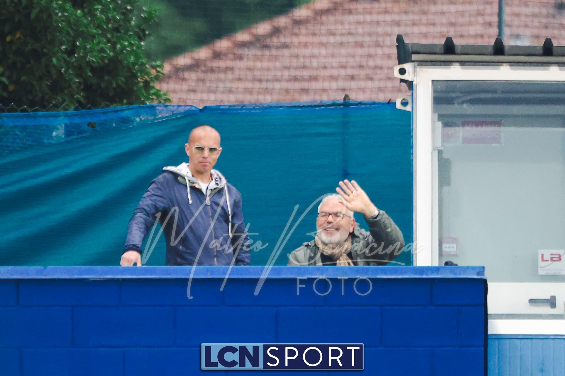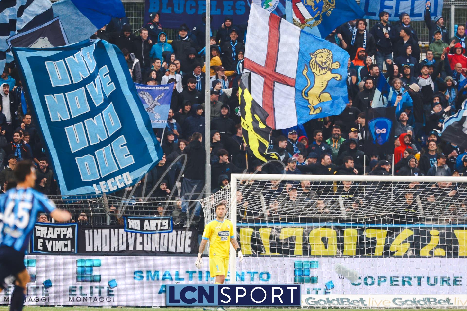 C’era una discreta attesa per la possibile presenza sul terrazzino del patron Paolo Leonardo Di Nunno, tenuta in segreto fino all’ultimo perché è lo stesso amministratore delegato – spesso e volentieri – a decidere all’ultimo secondo. Dopo un iniziale riscaldamento, la Curva Nord ha fatto sentire forte e chiaro il proprio scarso gradimento nei confronti dell’imprenditore barese, intonando per una buona decina di minuti dei cori di dissenso; in tutta risposta Di Nunno ha risposto con delle provocazioni ben intuibili dalle fotografie in allegato, dopodiché la contestazione ha lasciato spazio all’incitazione per la squadra. Il tutto sotto gli occhi di Fabrizio Citterio e Daniele Bizzozero, il primo intermediario del businessman Alex Lin e il secondo presidente dal 2014 al 2016 prima del fallimento decretato da Dario Colasanti, giudice del tribunale di Lecco; i due sono arrivati insieme e, dopo aver parcheggiato nel retrostadio grazie al pass concesso dalla società, hanno assistito alla partita dalla tribuna d’onore.