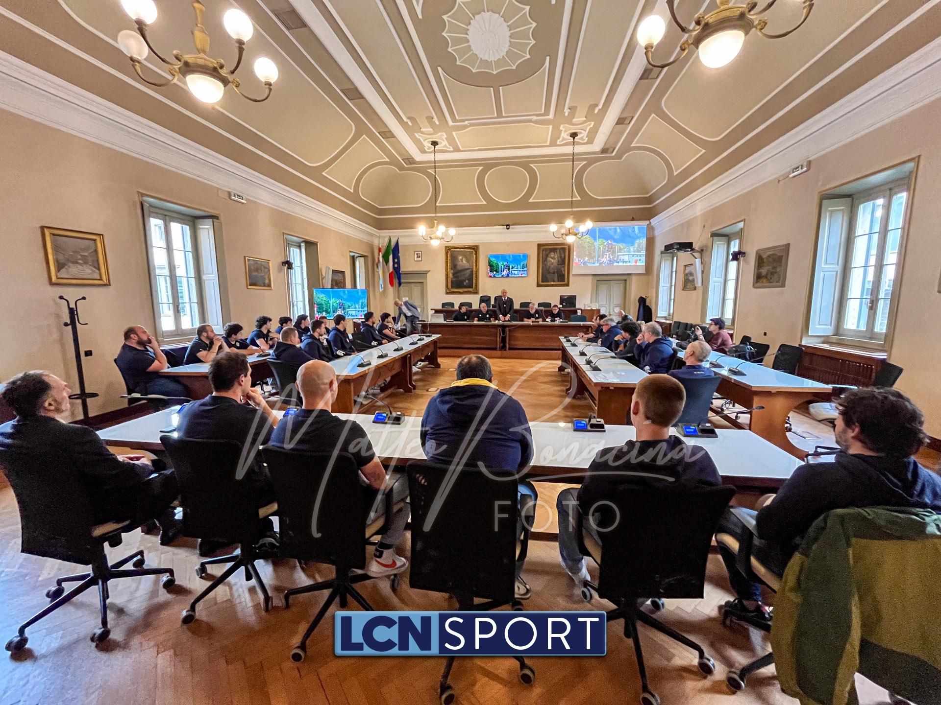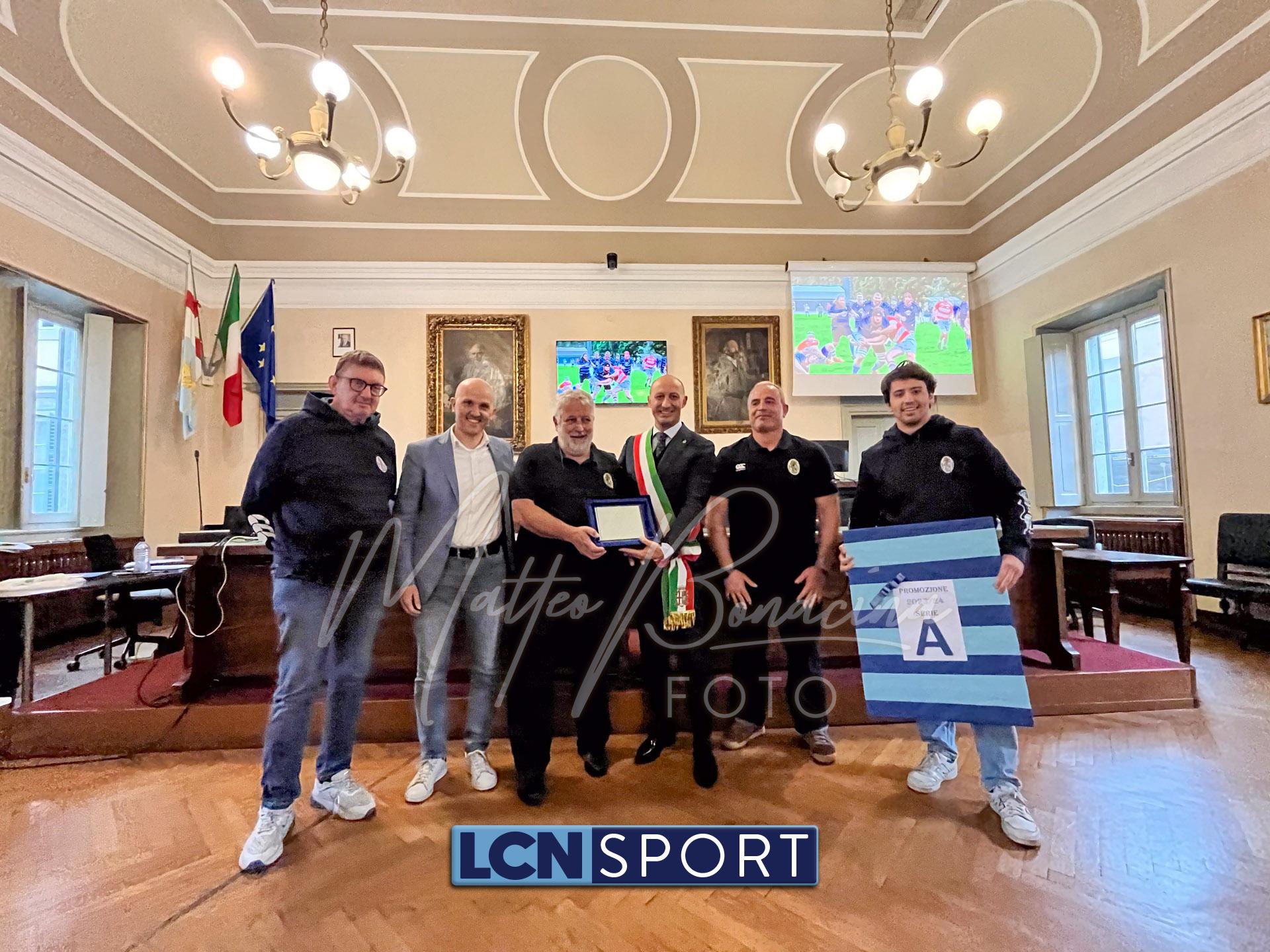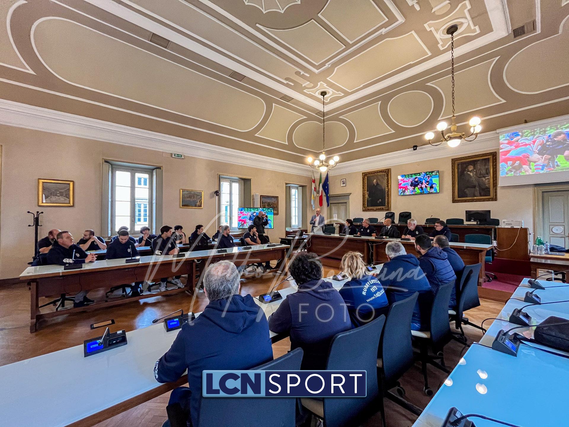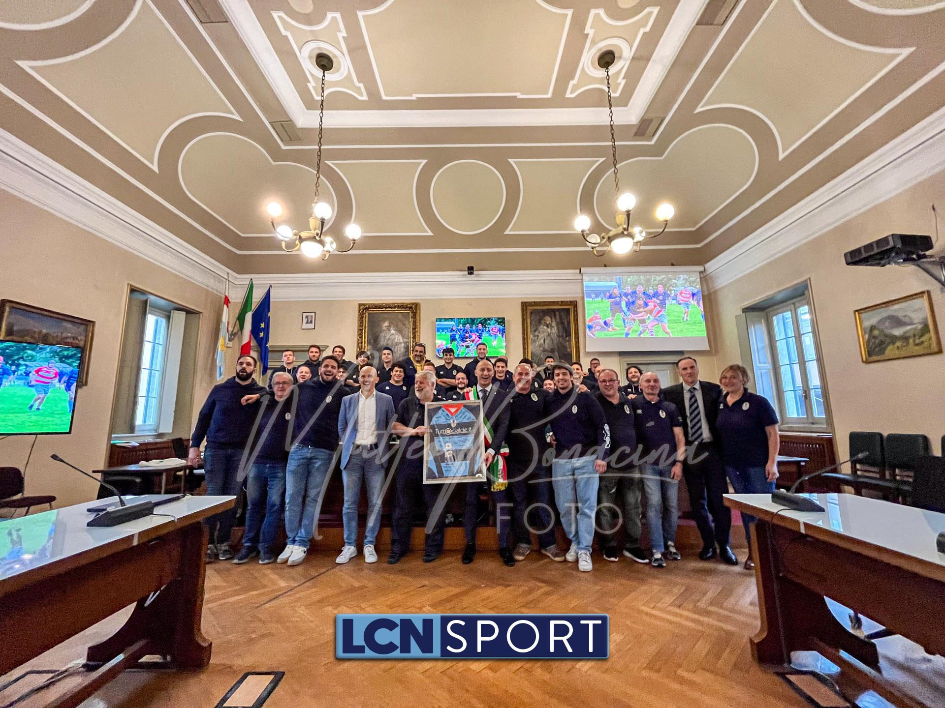 Lo sport lecchese sta vivendo delle punte notevoli in questo 2024. Tra le imprese maggiormente degne di nota c’è quella realizzata dal Rugby Lecco, che festeggerà i 50 anni di vita in Serie A. I Leoni, infatti, hanno coronato una stagione straordinaria con la promozione nella nuova Serie A2, un premio per una società che ha mandato in campo 21 giocatori su 22 cresciuti nel florido settore giovanile: giusta e meritata l’apertura delle porte del Comune di Lecco per un breve momento di celebrazione del traguardo sportivo. «Voglio tributarvi i migliori ringraziamenti da parte della Città di Lecco. E ogni investimento nello sport è un investimento che si fa sul futuro, per noi è un orgoglio aver questi risultati», ha salutato brevemente il sindaco Mauro Gattinoni.