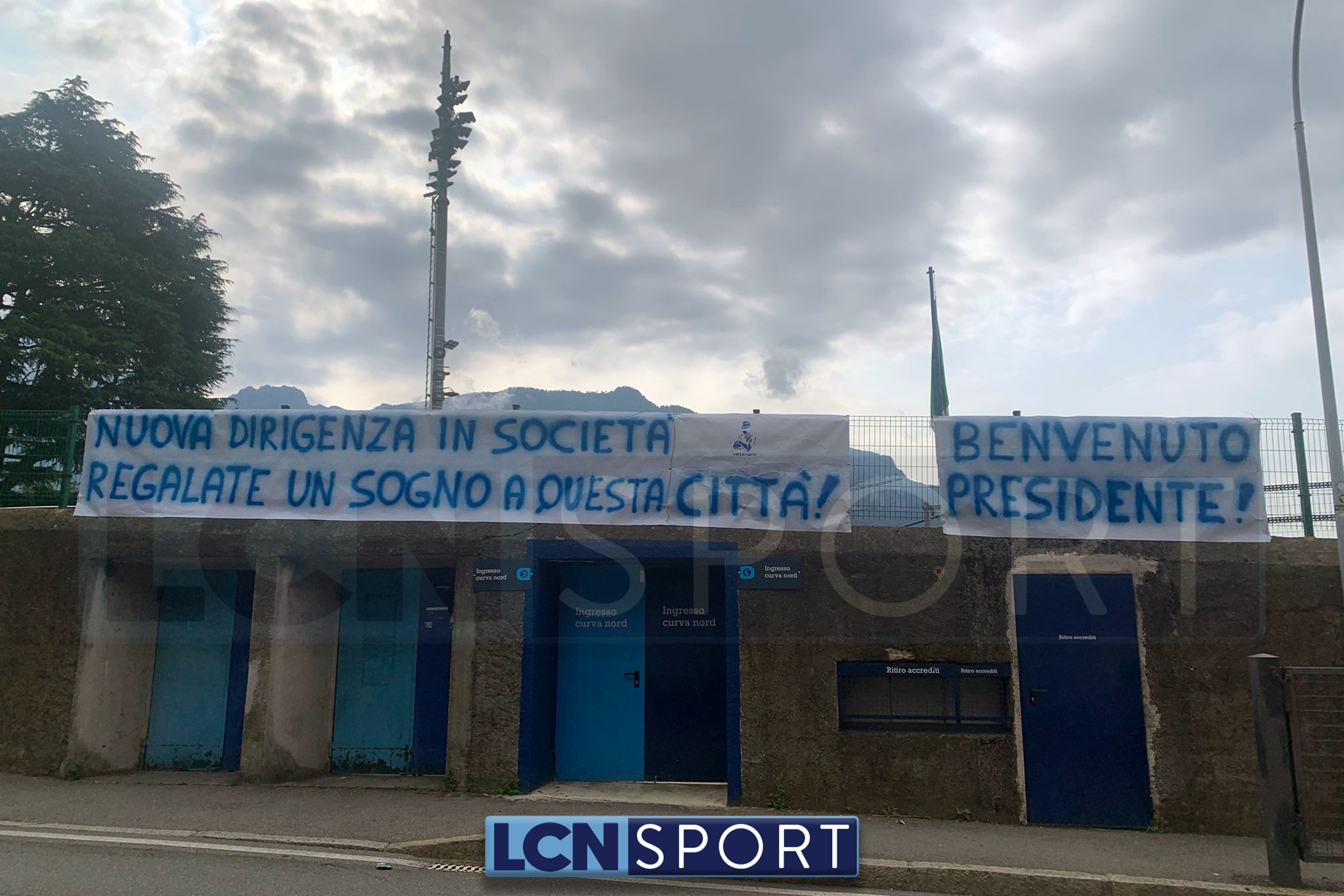 Il benvenuto ad Aniello Aliberti, e di riflesso al resto della nuova famiglia proprietaria della Calcio Lecco 1912, “corre” sulle mura del “Rigamonti-Ceppi”. Nella mattinata di venerdì 26 luglio i Veterani Lecco, gruppo organizzato della Curva Nord, hanno affisso un lungo lenzuolo proprio all’esterno del loro settore di riferimento: «Nuova dirigenza in società, regalate un sogno a questa città! Benvenuto Presidente!», questo il testo disegnato con le bombolette spray e ben visibile dalla strada; un saluto e anche un invito alla nuova dirigenza, completata dal club manager Michelangelo Vitali e dal direttore sportivo Antonio Minadeo.