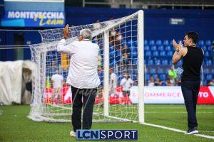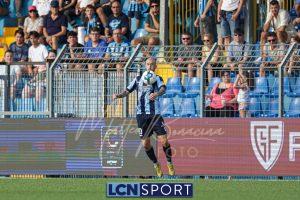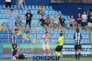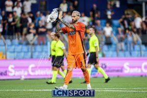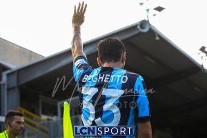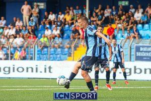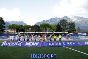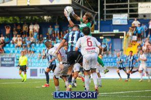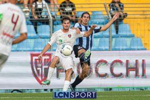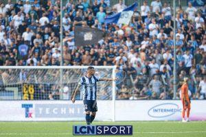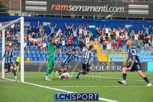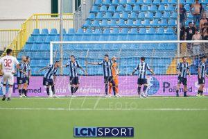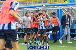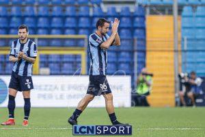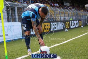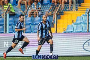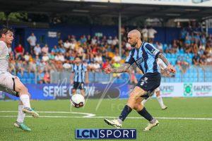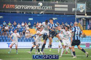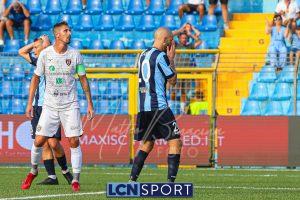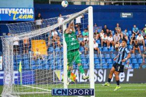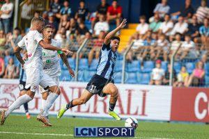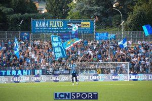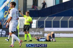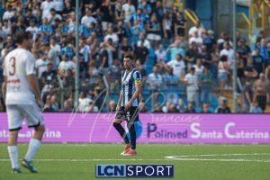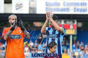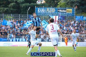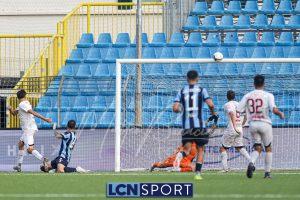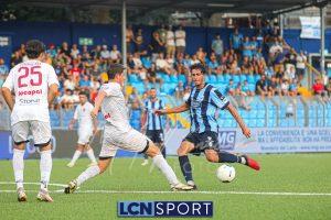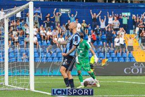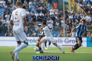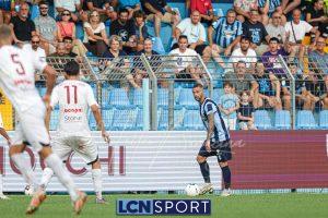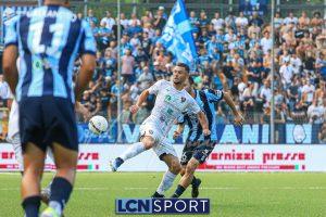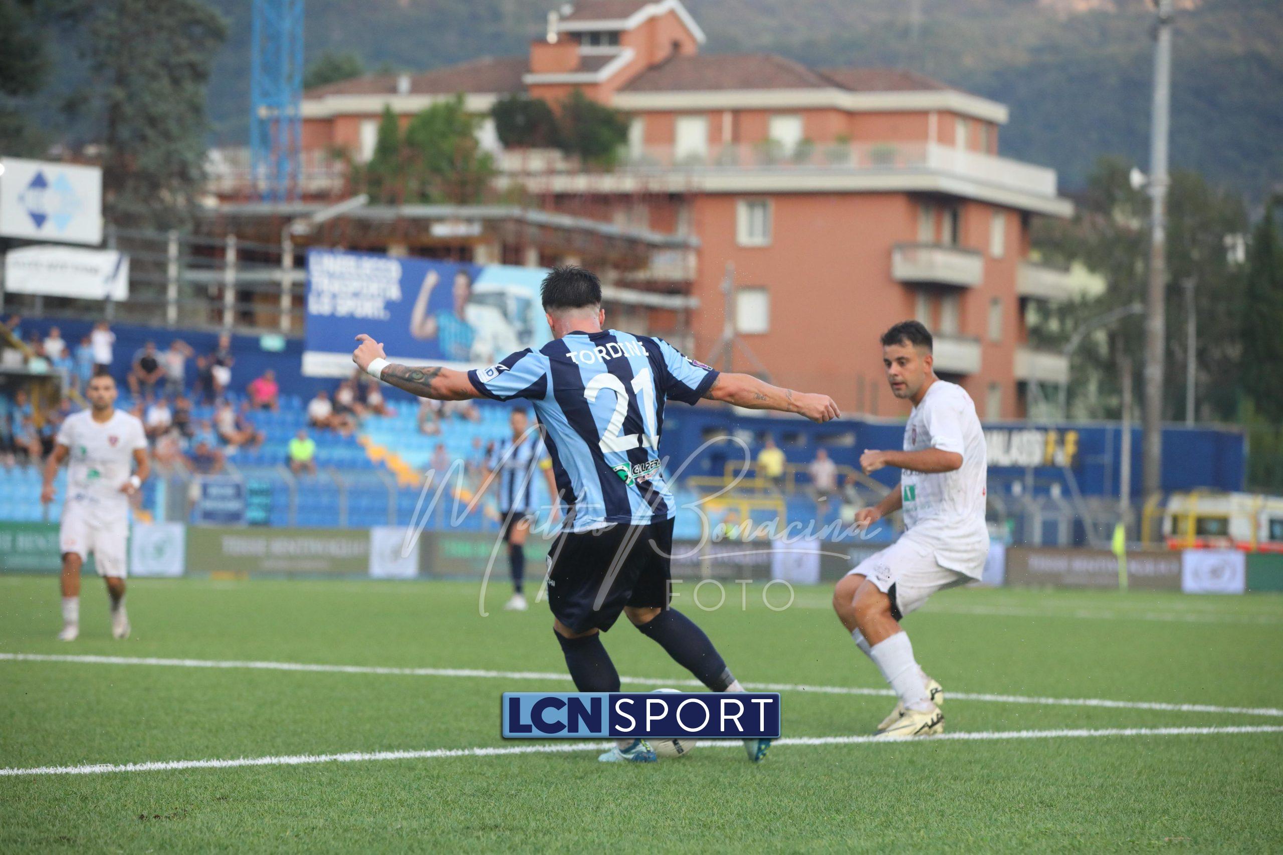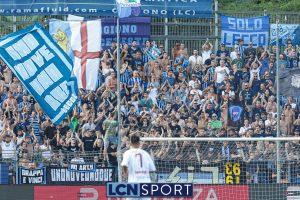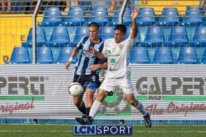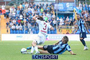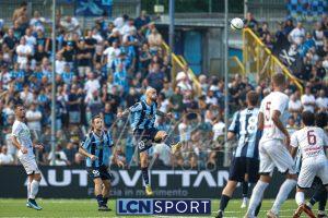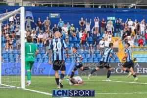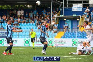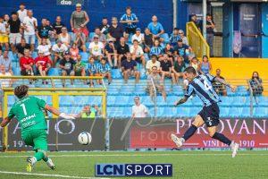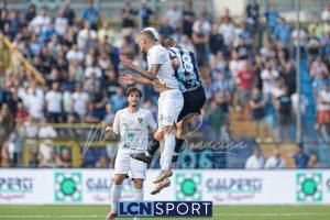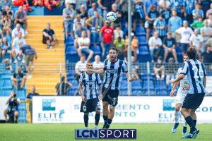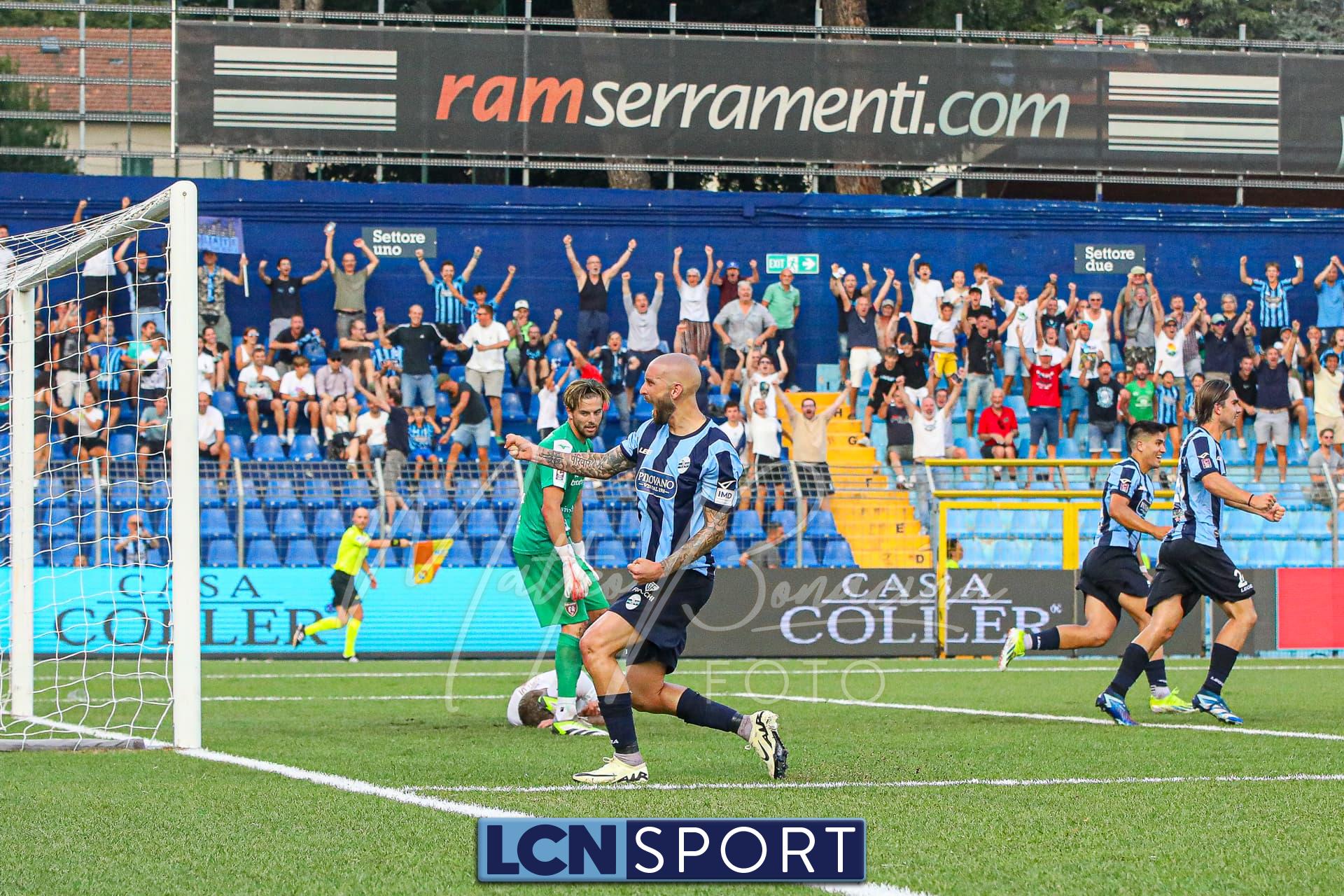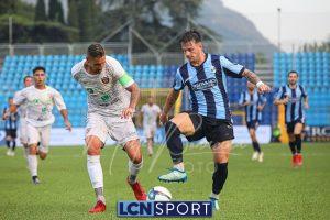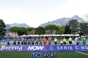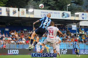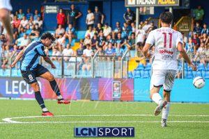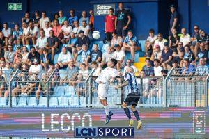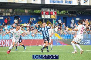 Risponde il Lecco al 72′: cross in area, Gasparini esce a farfalle e abbatte Galeandro, che però non cade, palla a Battistini che a porta vuota, seppure da posizione defilata, la spara fuori. Il Lecco preme al 72′ con una duplice occasione: conclusione violenta di Marrone parata, poi ci prova Ilari di testa e deviazione in angolo. Dagli sviluppi palla a Tordini da sinistra, tiro teso in mezzo e autorete di Salvi che di testa la mette nella propria porta per l’1-0. Lo stesso Tordini poco dopo si gira bene al limite dell’area e calcia, senza forza: centrale.