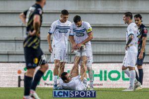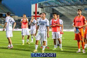 I blucelesti faticano a costruire gioco e passano da calcio d’angolo con Marrone, poi lasciano l’iniziativa ai padroni di casa, molto imprecisi al tiro. In pieno recupero un rimpallo da corner frutta l’1-1 ai trentini