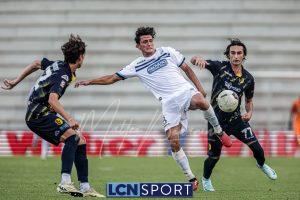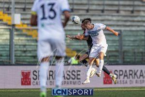 Clamorosa doppia chance per il raddoppio lecchese all’85’: Gunduz entra in area, si gira e calcia addosso a Tommasi, sul rimpallo centra la traversa. Qualche istante più tardi Rocco, di forza, si gira bene e non va lontano dal palo in diagonale. Dall’altra parte Disanto entra in area e calcia di collo, fuori di pochissimo. Il Lecco, con i “piccoli” davanti, riesce a tenere più spesso palla.