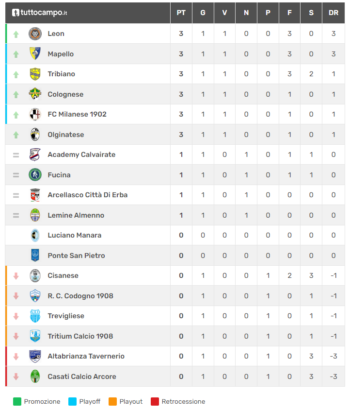 Riguardo alla recentemente passata tranche di partite spiccano sicuramente Leon e Mapello che hanno segnato tre reti senza subirne nelle rispettive gare in trasferta contro l’Altabrianza Tavernerio e il Casati Calcio Arcore: in particolare per i brianzoli c’è stata la rete a fine primo tempo di Vassallo che si è ripetuto nella ripresa dove nel recupero l’offensivo Ronchi ha completato il tris. I gialloblù invece hanno siglato due gol nei primi 45 minuti: Maj ha aperto i giochi al quarto d’ora di gara e poi è arrivata la rete di un altro difensore ovvero quella di Gambarini. A inizio secondo tempo l’attaccante classe 93′ Confalonieri ha centrato lo specchio chiudendo la sfida. In terra bergamasca il Tribiano è stato corsaro con la Cisanese e ha conquistato i tre punti in un match ricco di gol ed emozioni finito 2-3: la sfida si sblocca per i milanesi al 40′ con Romanini. Il resto delle marcature si sono verificate nella ripresa: il Tribiano si porta sul triplo vantaggio con il rigore di Fondrini e il gol di Paparella. In seguito è giunta la reazione dei padroni di casa con i sigilli di Lizzola e Fumagalli. La Colognese ha battuto di misura tra le mura amiche la neoretrocessa Tritium con una rete alla mezz’ora di Okyere. La Trevigliese invece ha subito un’espulsione durante la partita e ha perso 0-1 per mano dell’FC Milanese che ha potuto assaggiare il gusto del bottino pieno grazie a Checchi al 49′. L’incontro tra Academy Calvairate e la Fucina, ex Muggiò, di bomber Picci è terminato 1-1: a Sow per la formazione casalinga nella prima parte di match ha risposto Nenadovic nella ripresa per gli ospiti. In chiusura va segnalato il pari a reti bianche in Arcellasco–Almenno.
