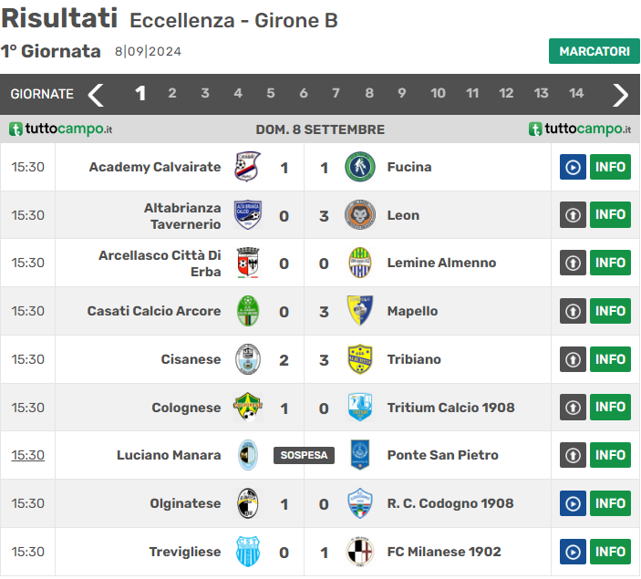 Nella giornata d’apertura del girone B di Eccellenza lombarda vanno segnalati i tris di Mapello e Leon oltre ad un pirotecnico Cisanese–Tribiano e alla sospensione di Luciano Manara–Ponte San Pietro.
