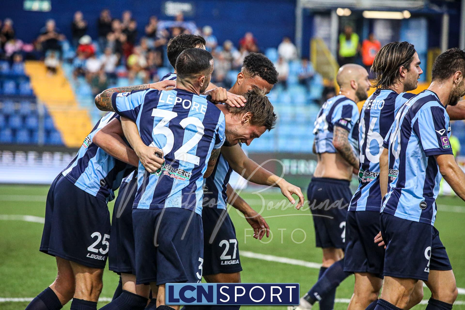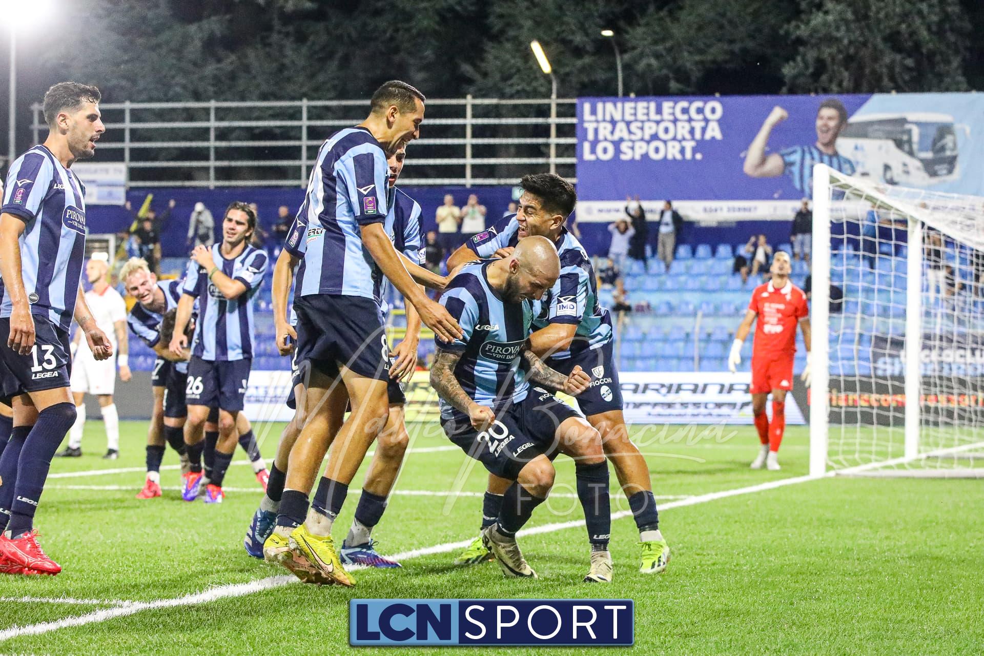 Al 19′ Kritta viene steso in area dopo una giocata ubriacante di Galeandro: proteste del Lecco. Sei minuti più tardi Lepore trova proprio Galeandro al centro dell’area, che controlla benissimo e va al tiro al volo: Roos Kelle si oppone con il corpo. Il vantaggio è nell’aria e arriva alla mezzora: Kritta pennella da angolo per Celjak, che all’esordio stagionale timbra subito il cartellino.