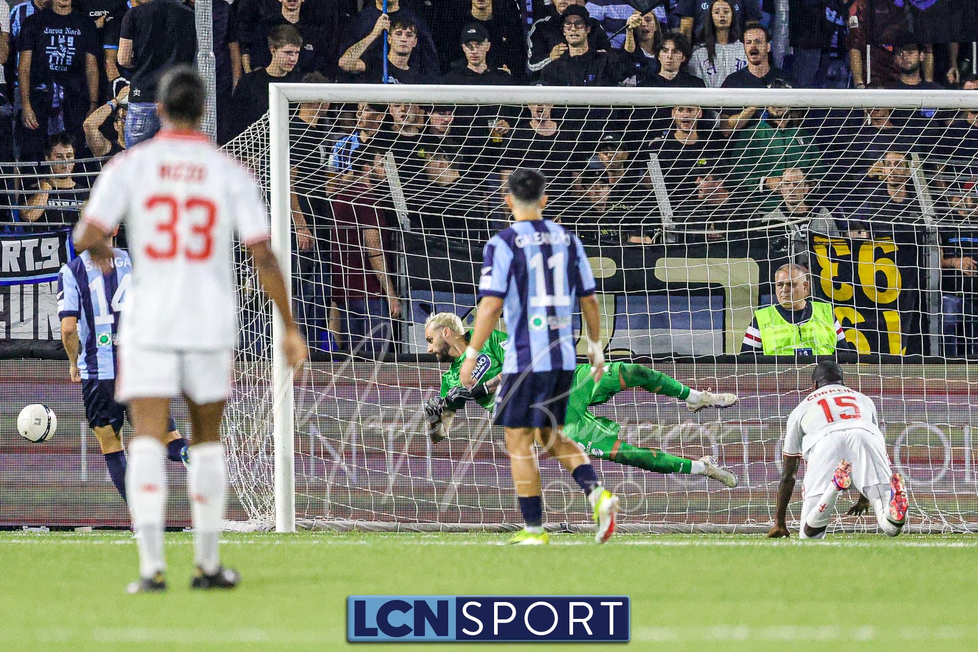 Al 35′ l’immediato pareggio: mischia in area su corner, presunto fallo di Celjak su Frare e rigore per la Triestina. Sul dischetto va Attys e spiazza Furlan, che non indovina l’angolo.