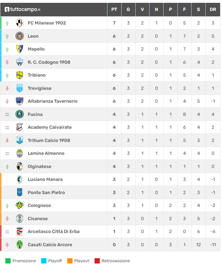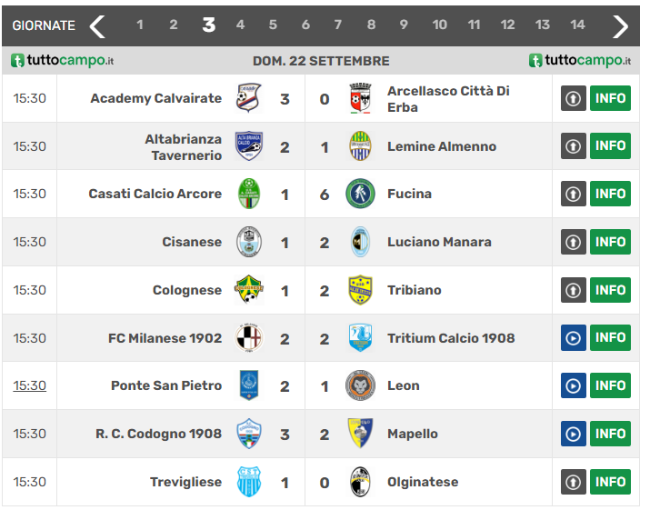 Ecco di seguito la classifica e i risultati del terzo turno del girone B di Eccellenza lombarda: