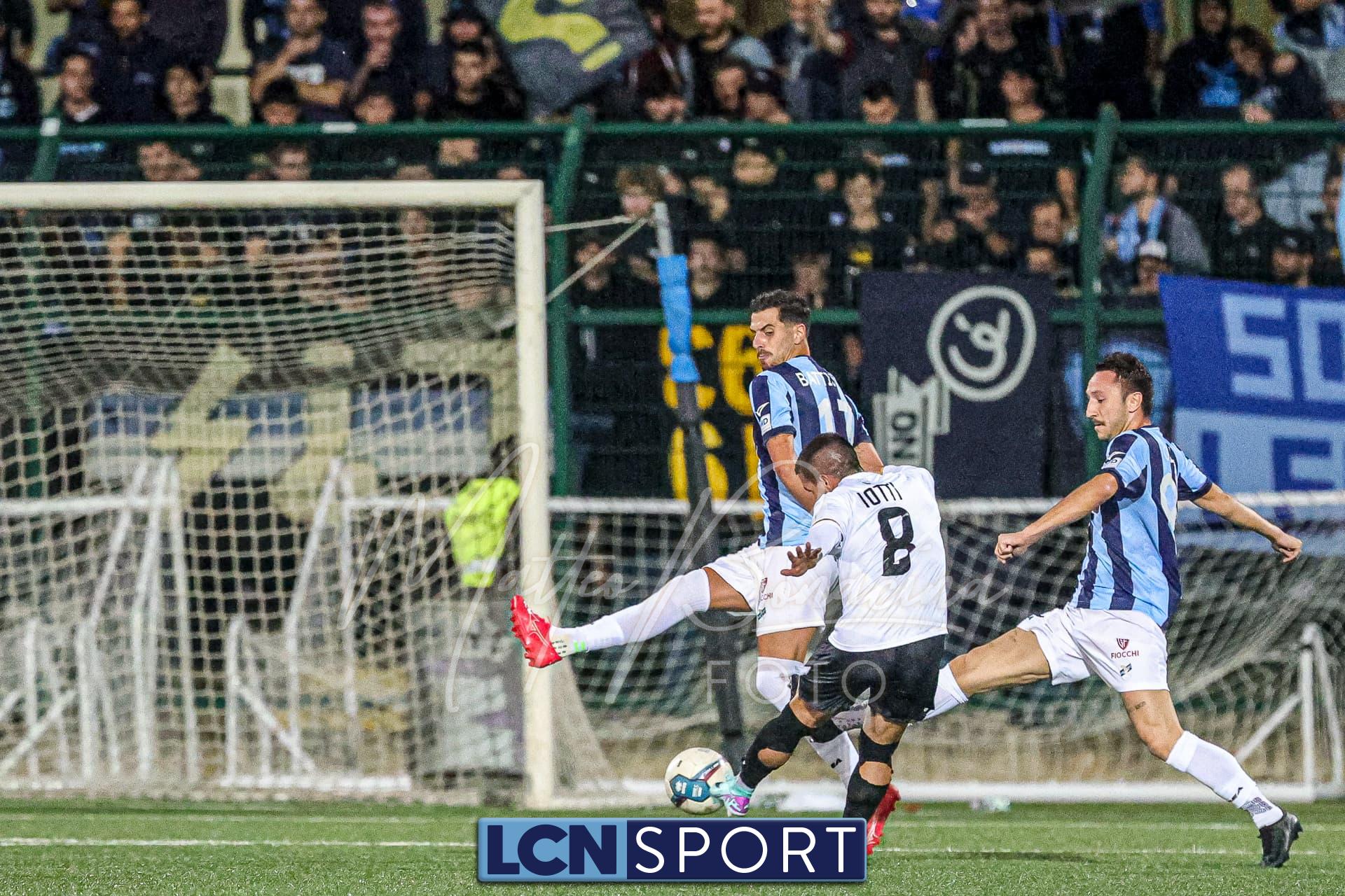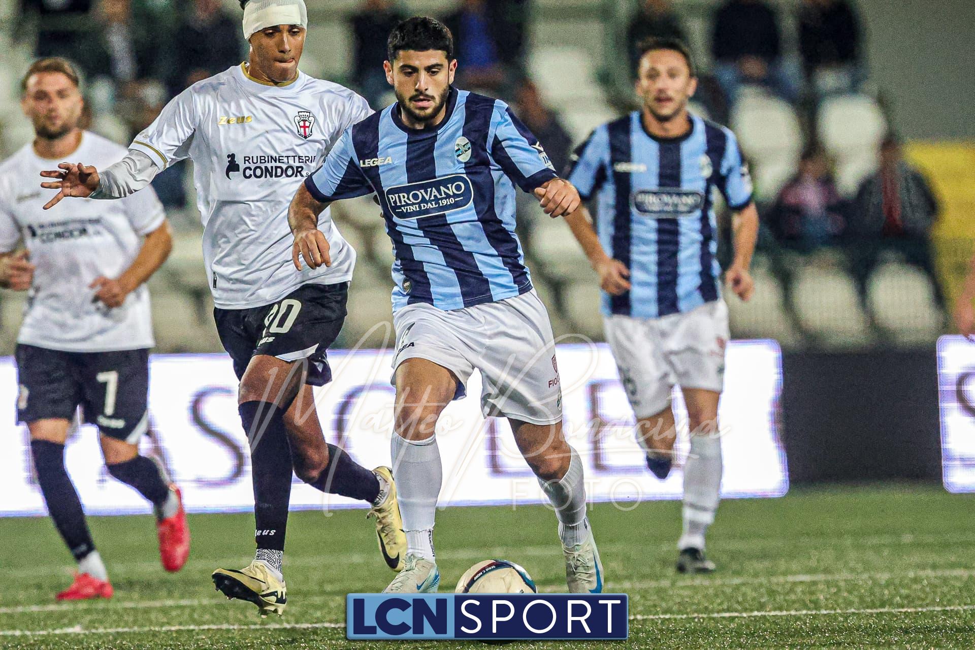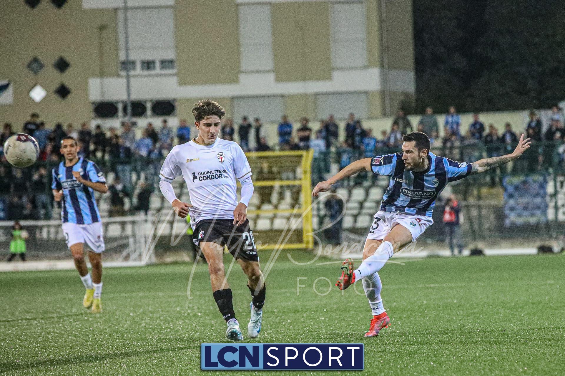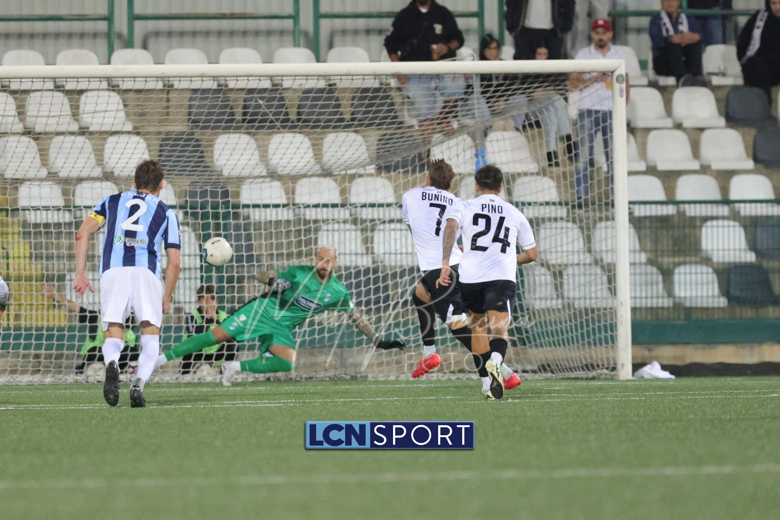 Partenza sprint dei padroni di casa che cercano di schiacciare gli ospiti per un paio di minuti in area, senza grande costrutto. Alla prima vera occasione per i blucelesti, la partita si sblocca: cambio di gioco sontuoso di Beghetto a destra per Galeandro che stoppa di petto, si sposta sul mancino e trafigge un non irreprensibile Rizzo per l’1-0.