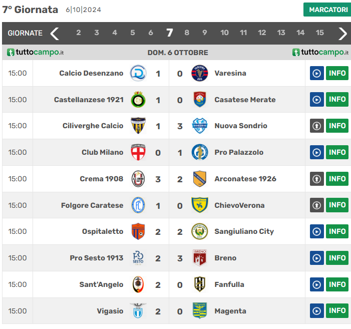 Tabellino Castellanzese 1921 – Casatese Merate 1 – 0
