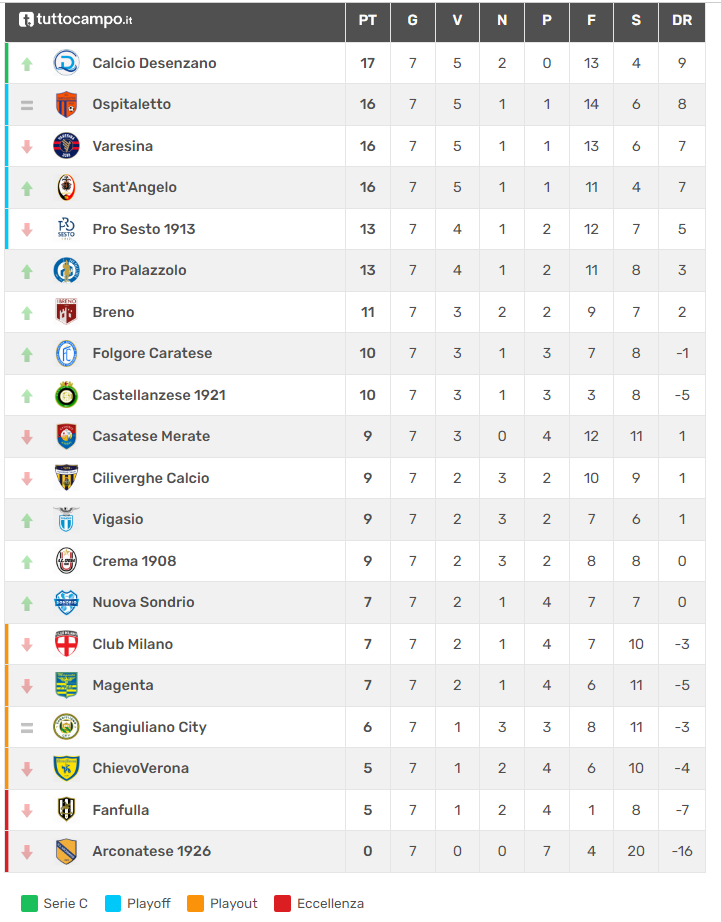 Di seguito gli altri risultati del settimo turno del girone B di Serie D e la relativa classifica: