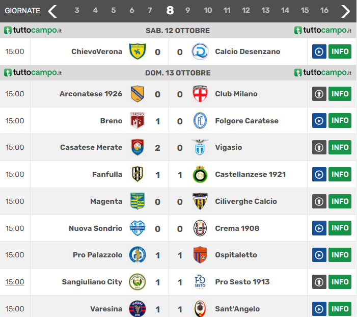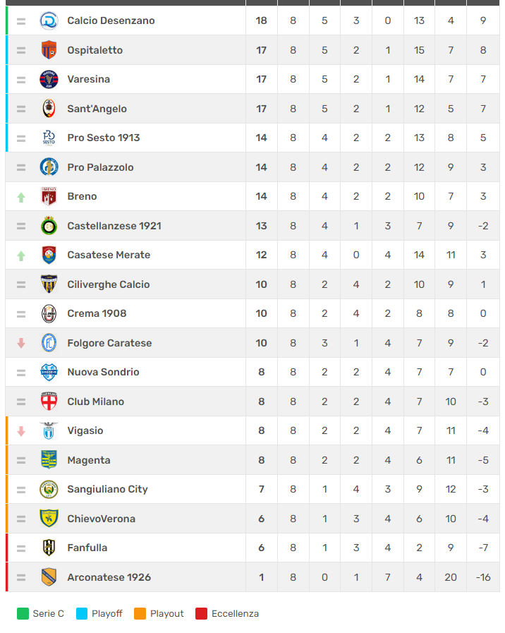 Di seguito la classifica e gli esiti delle ultime sfide del girone B di Serie D: