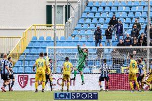 Al 39′ campanile nell’area del Lecco, improvviso colpo di testa all’indietro fortissimo di Jaouhari su cui Dalmasso deve tuffarsi per deviare.