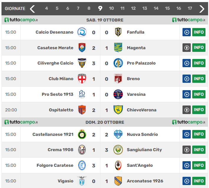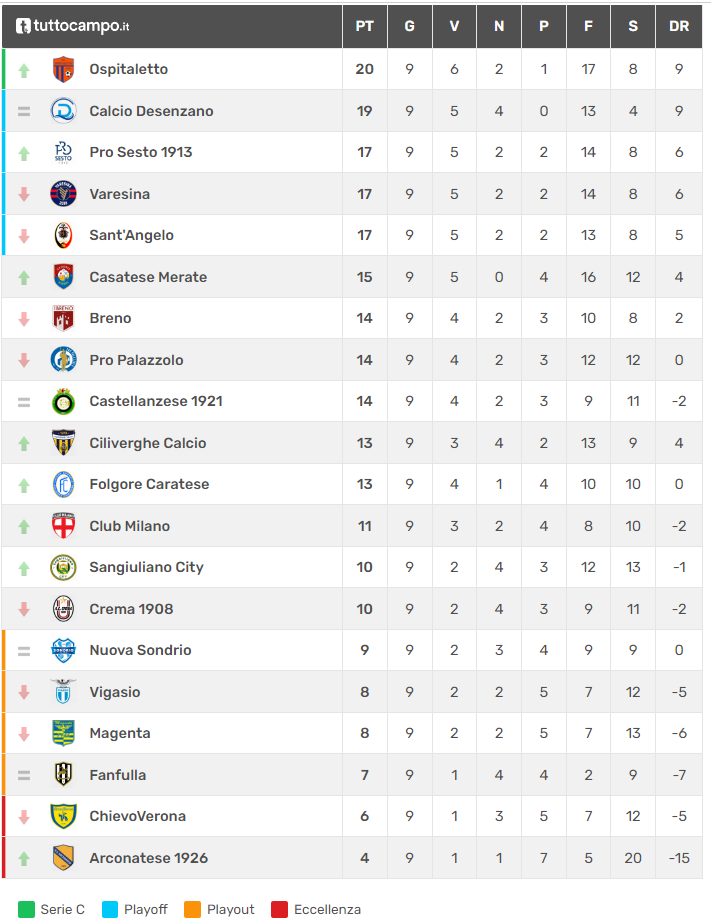 Di seguito la classifica e gli esiti postumi al nono turno del girone B di Serie D: