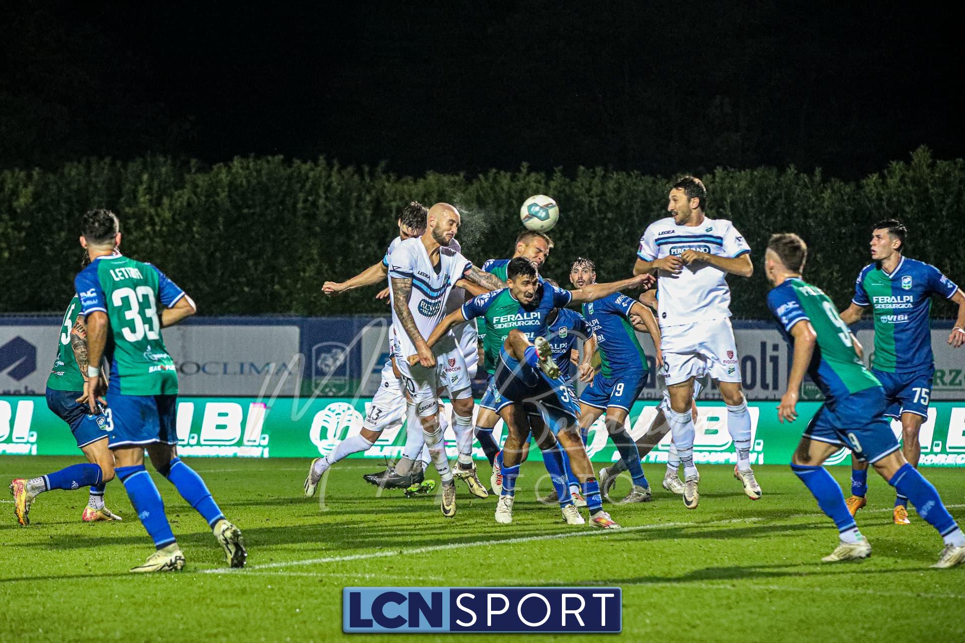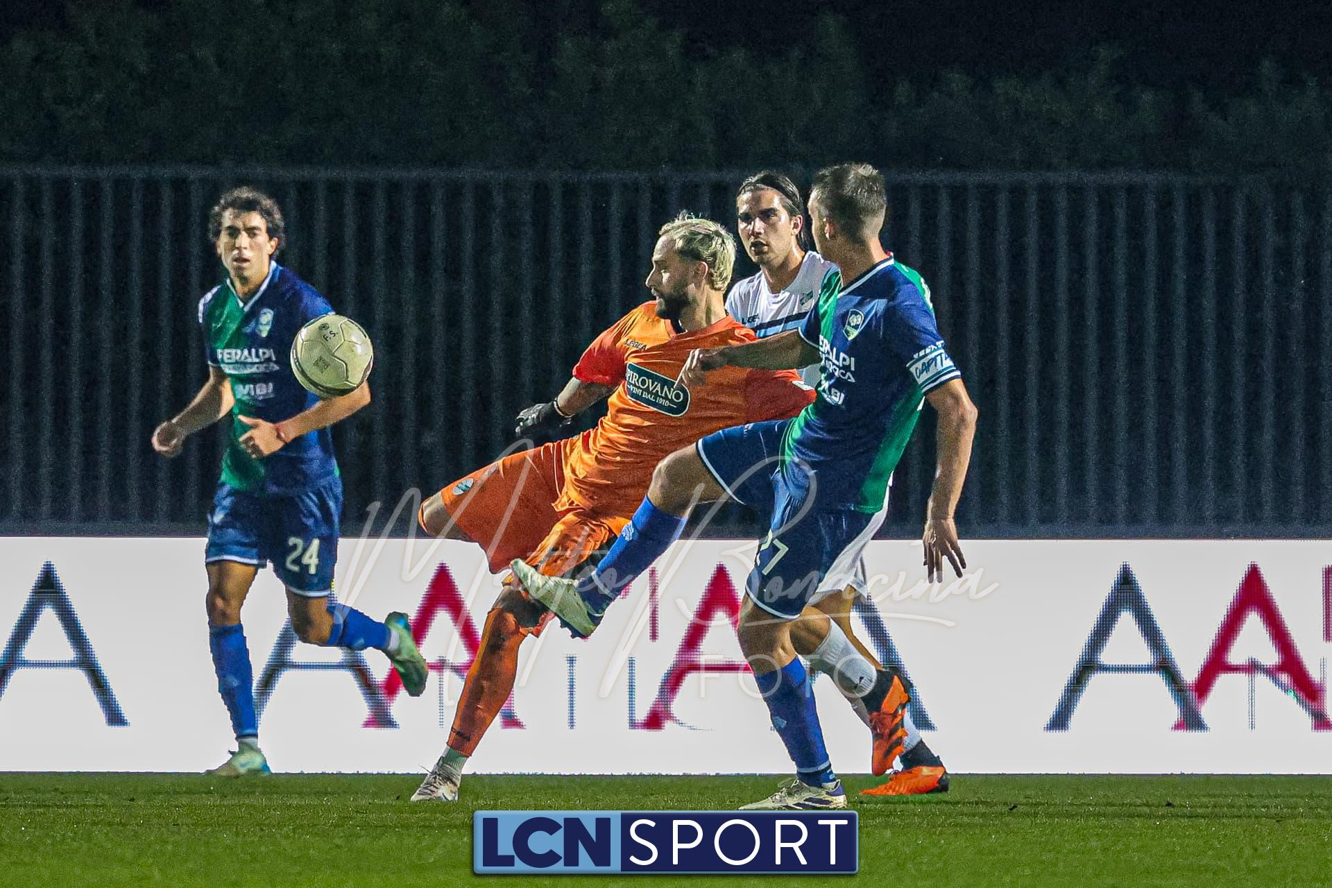 Pietrelli fa quello che vuole a destra, i blucelesti non lo prendono mai; taglia ancora al centro saltando tutti ma calciando male. Al 34′ la Feralpi la fa girare al limite dell’area fino alla conclusione, ancora alta. Poco più tardi palla persa a destra, Cavuoti scende uno contro uno a sinistra saltando Battistini e conclude, Furlan in uscita compie un mezzo miracolo chiudendo lo specchio della porta con il piede. Cavuoti prova ancora al 38′ dai trentacinque metri, Furlan costretto a parare in due tempi.