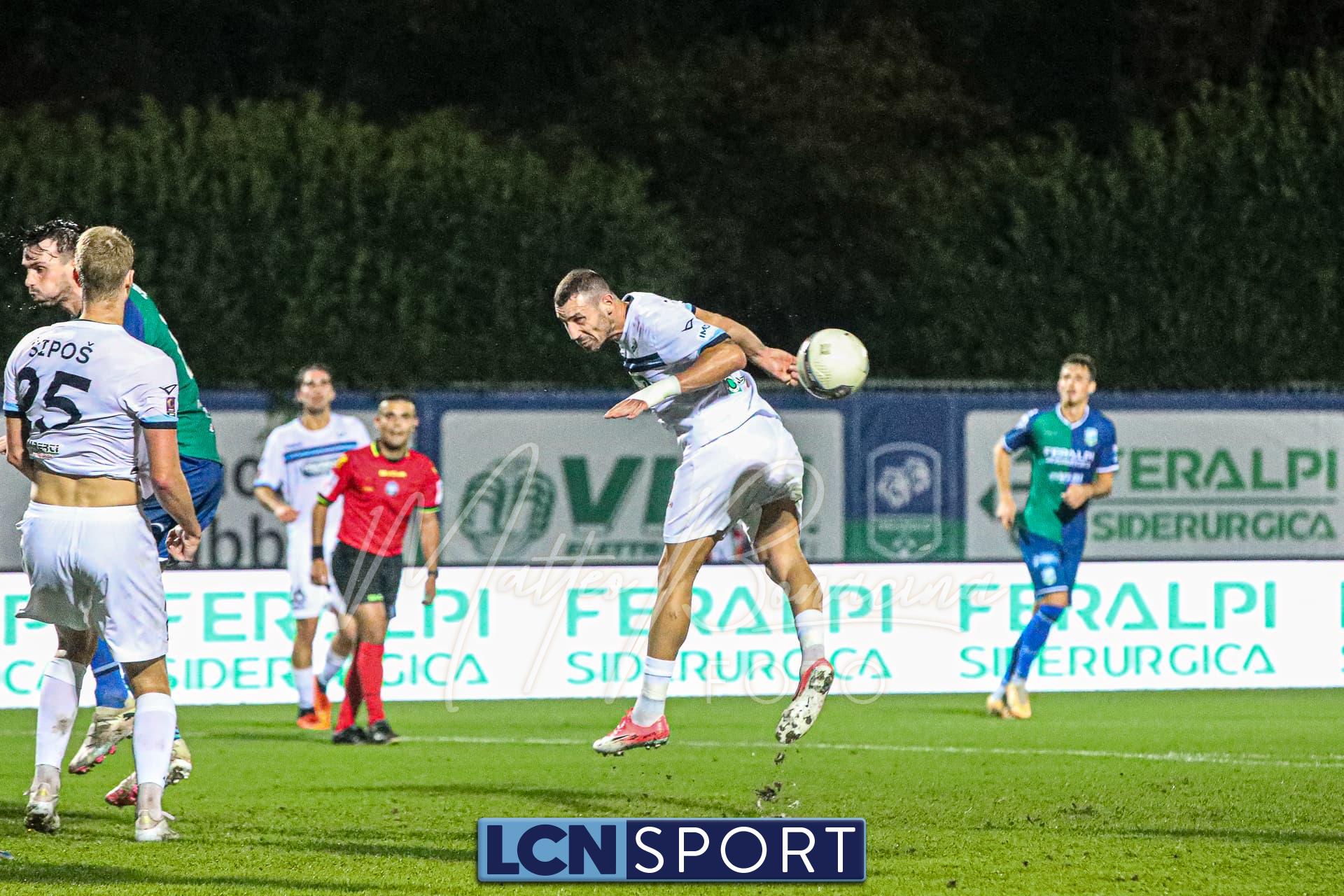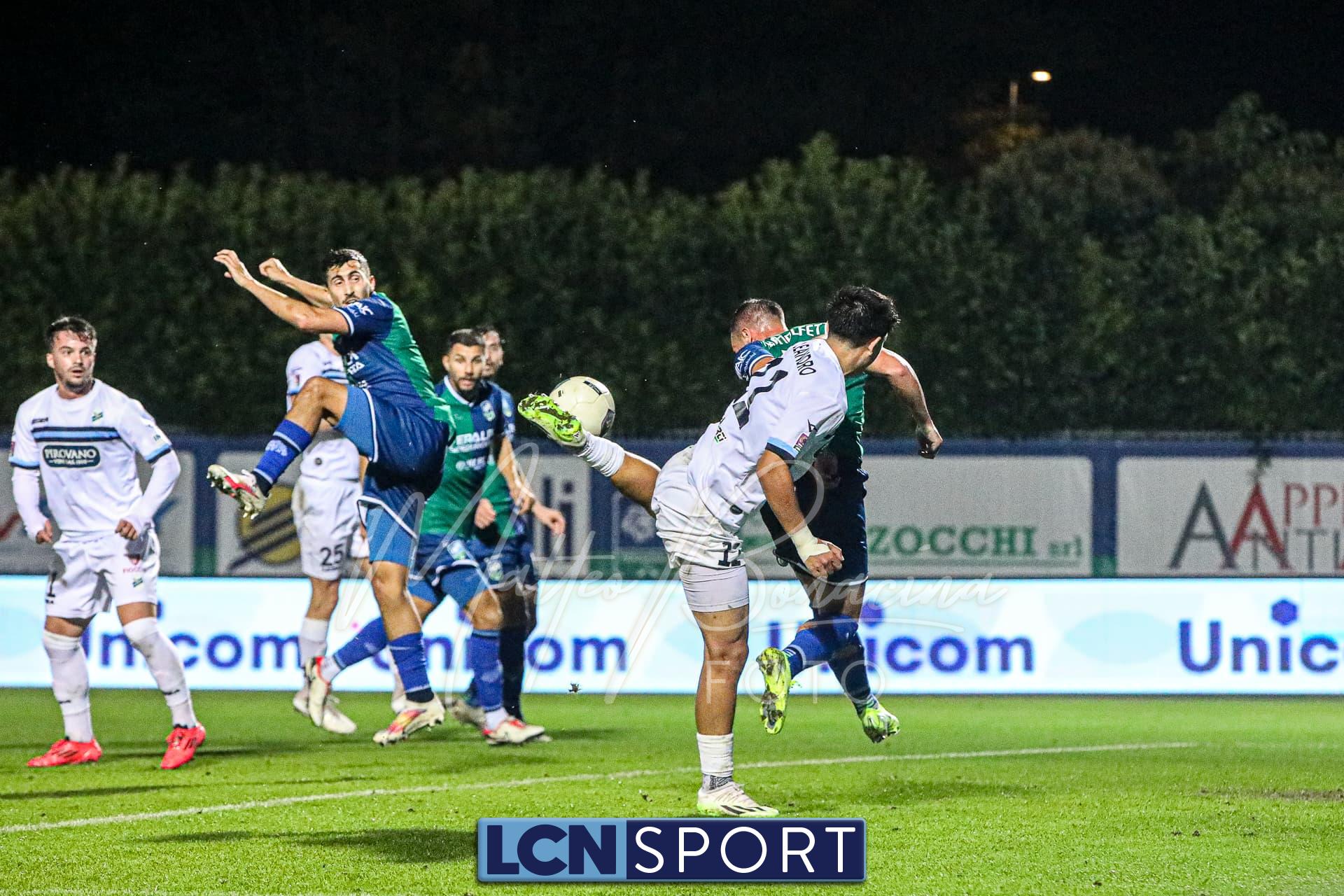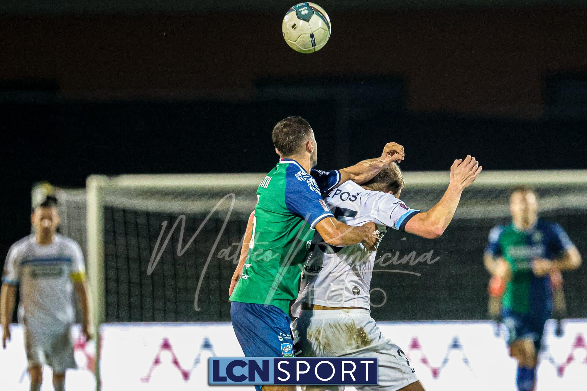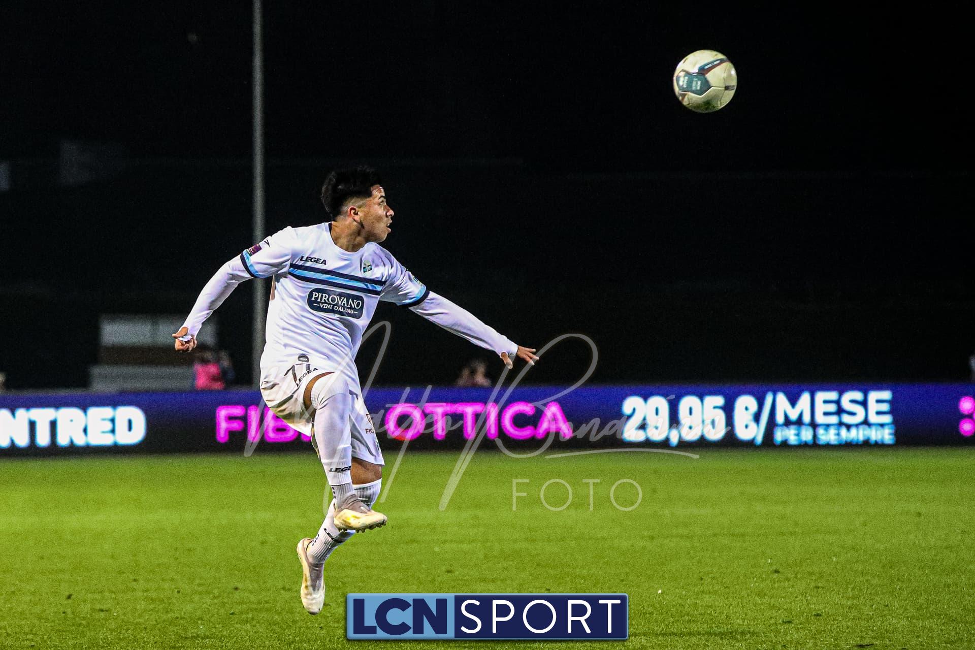 Al 6′ dentro Tordini e Kritta, Lecco a trazione anteriore. E subito Kritta si sovrappone con Ionita a sinistra, cross per Galeandro sul secondo palo, torre con rimbalzo per Frigerio che si tuffa in maniera magistrale e insacca da un metro dalla porta: 1-1.