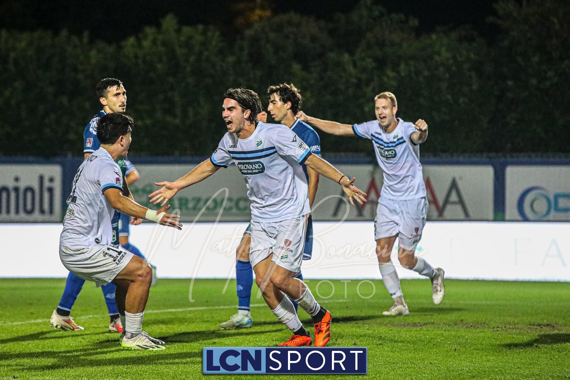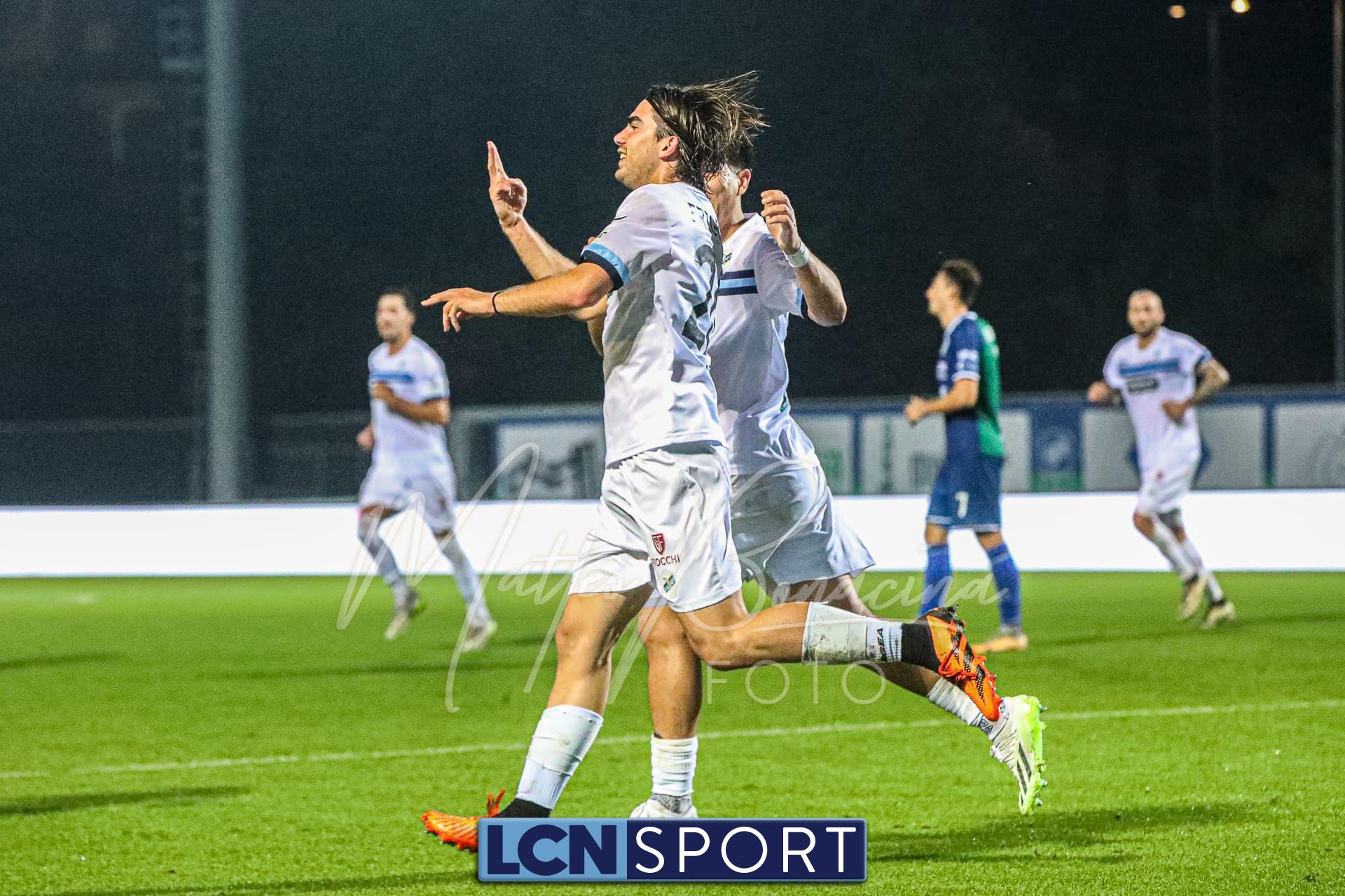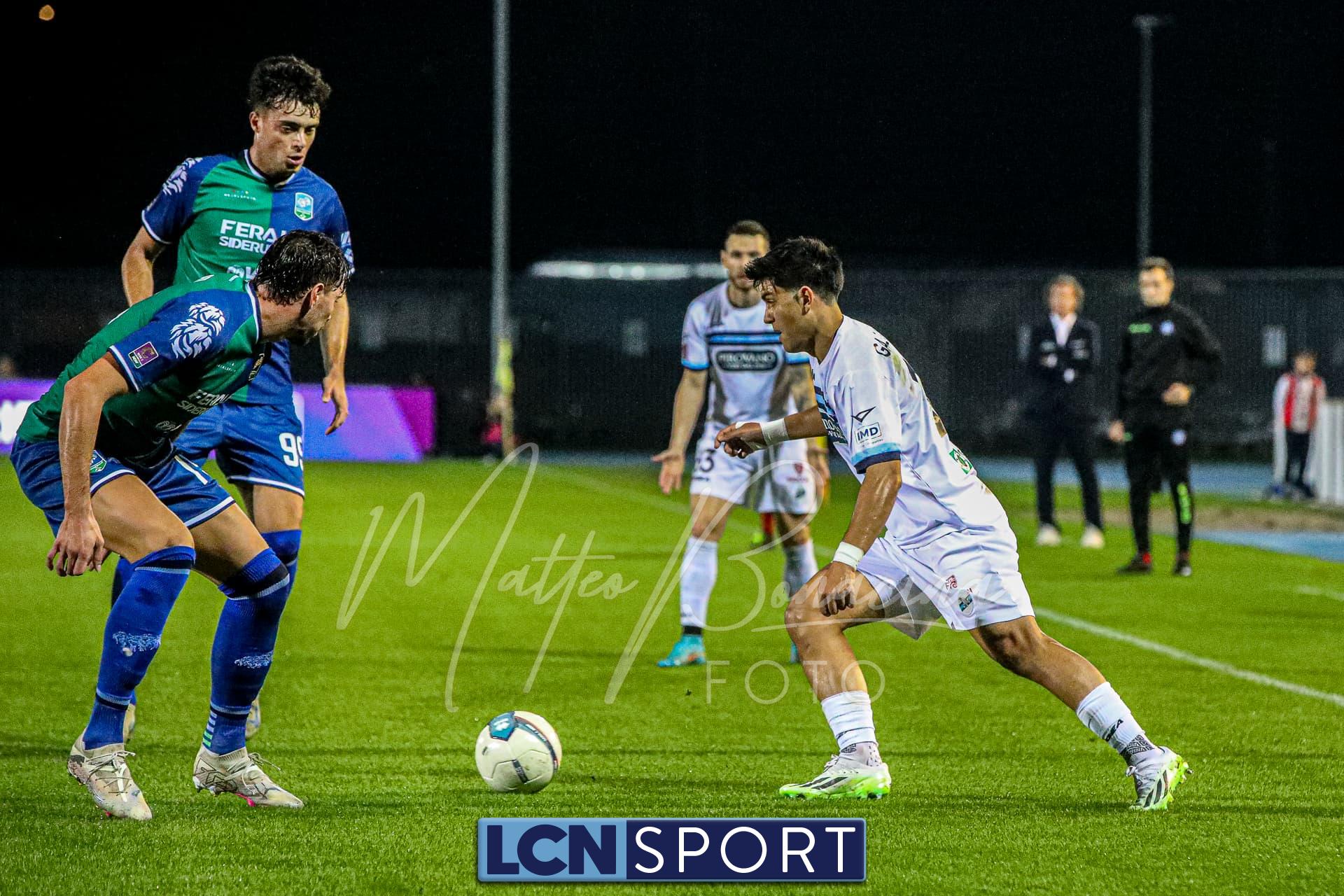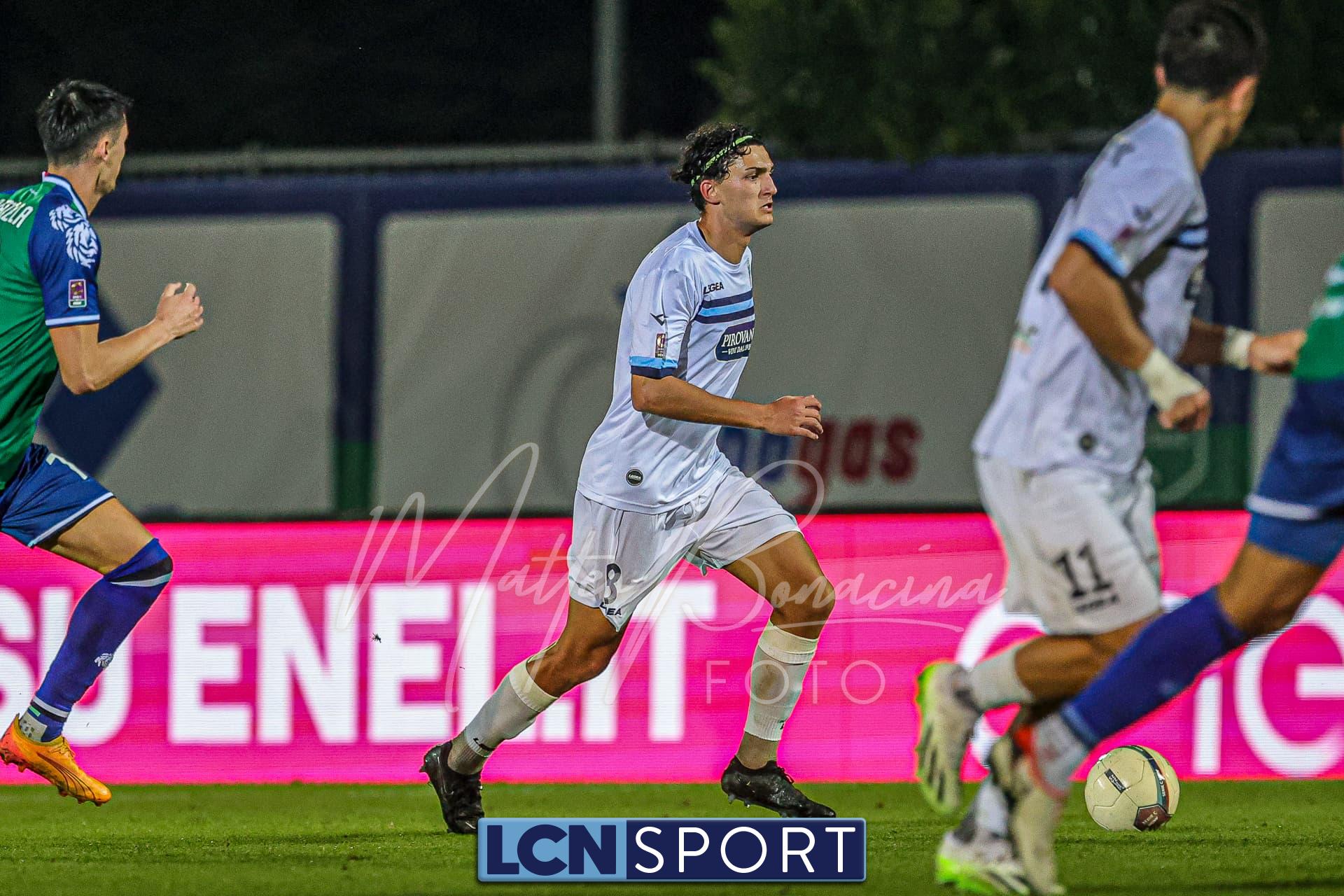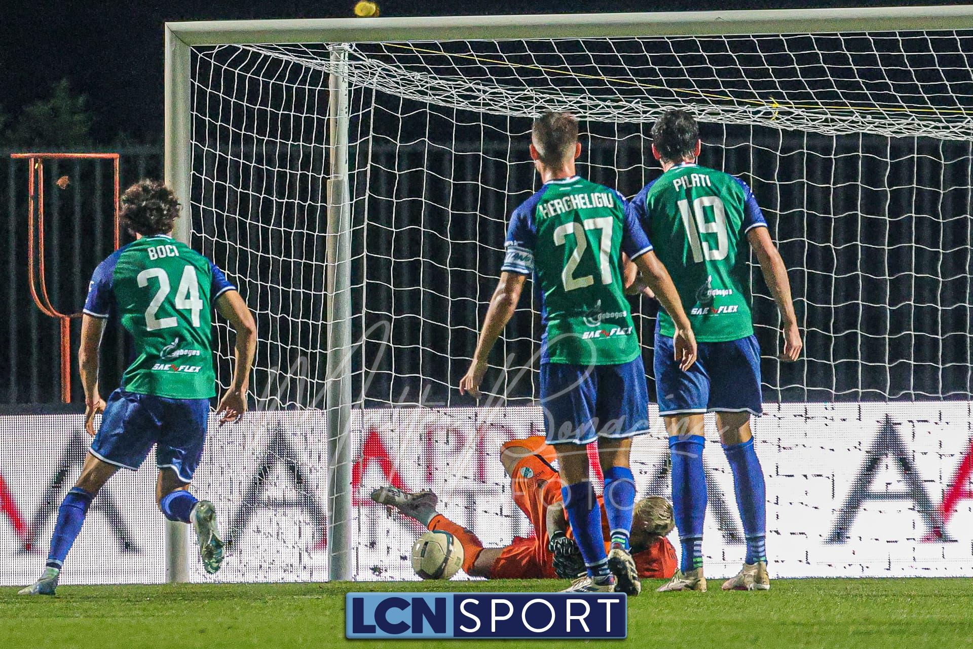 Al 6′ dentro Tordini e Kritta, Lecco a trazione anteriore. E subito Kritta si sovrappone con Ionita a sinistra, cross per Galeandro sul secondo palo, torre con rimbalzo per Frigerio che si tuffa in maniera magistrale e insacca da un metro dalla porta: 1-1.