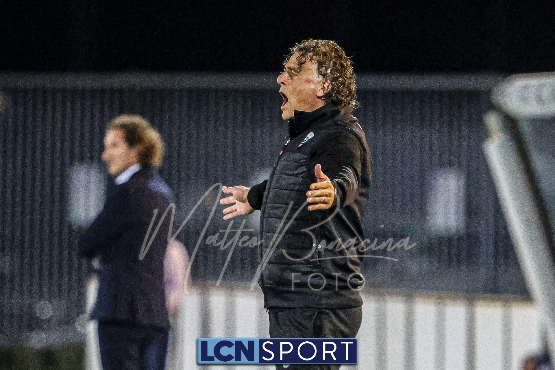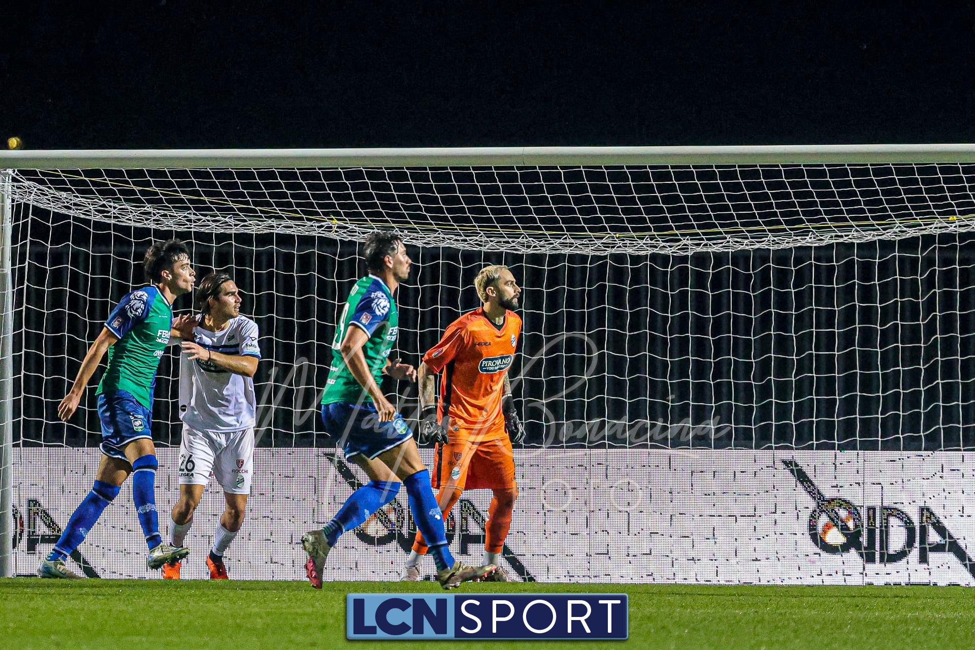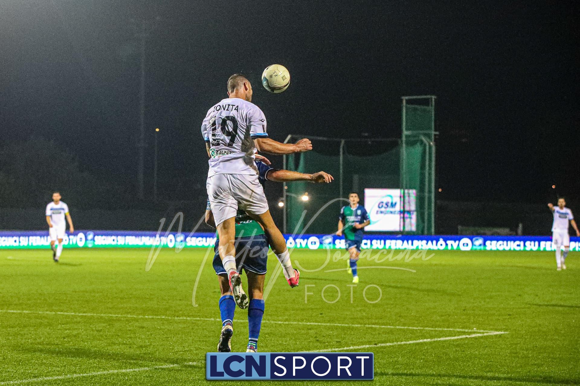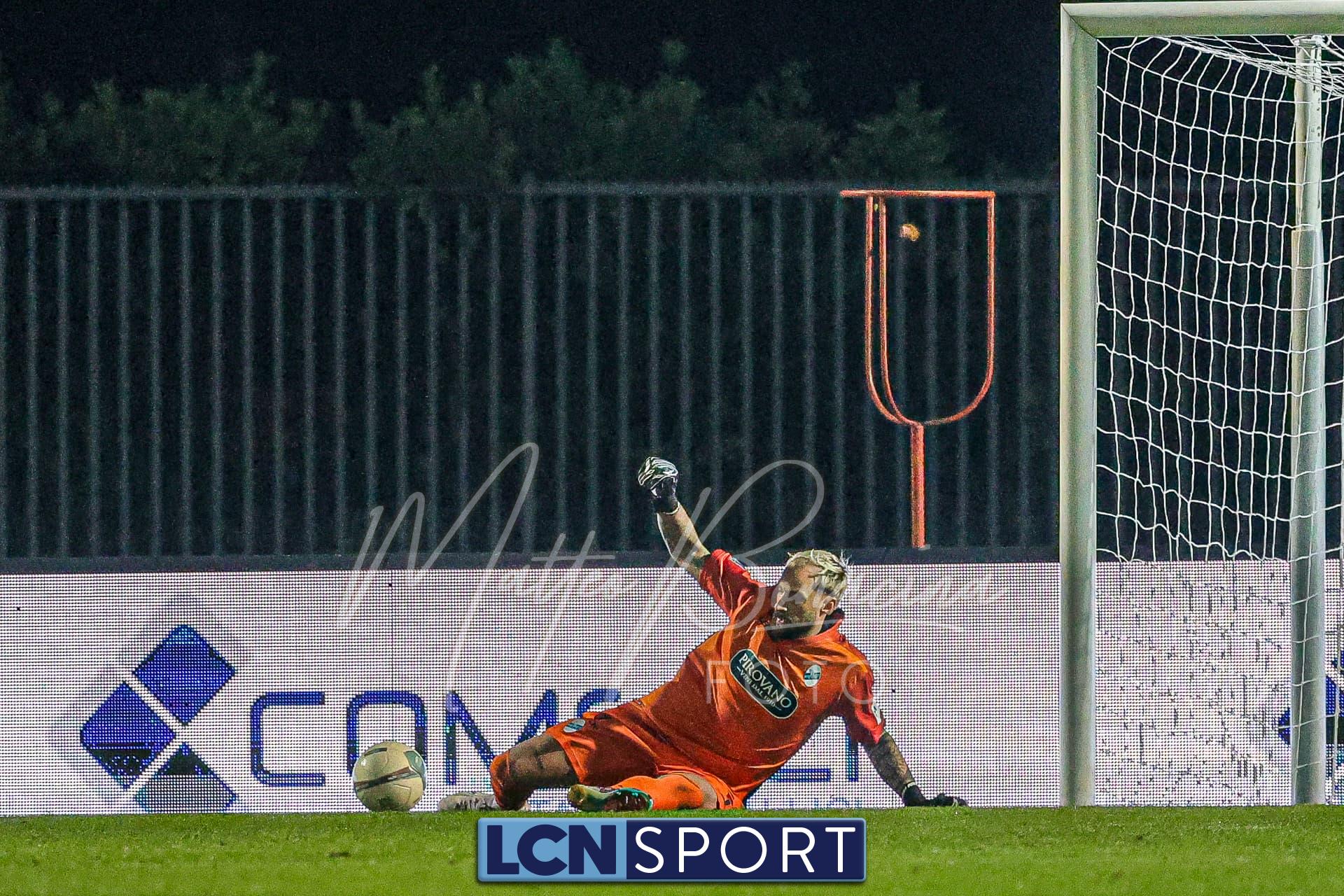 Al 6′ dentro Tordini e Kritta, Lecco a trazione anteriore. E subito Kritta si sovrappone con Ionita a sinistra, cross per Galeandro sul secondo palo, torre con rimbalzo per Frigerio che si tuffa in maniera magistrale e insacca da un metro dalla porta: 1-1.