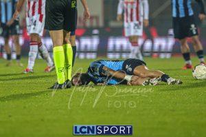 Triplo cambio nel Lecco: fuori Tordini (che partita a livello di applicazione e intensità!), Sipos e Galli, dentro Zuberek, Ilari e Beghetto. Al 78′ Furlan esce coraggiosamente su Rauti in corsa e prende un colpo in testa.
